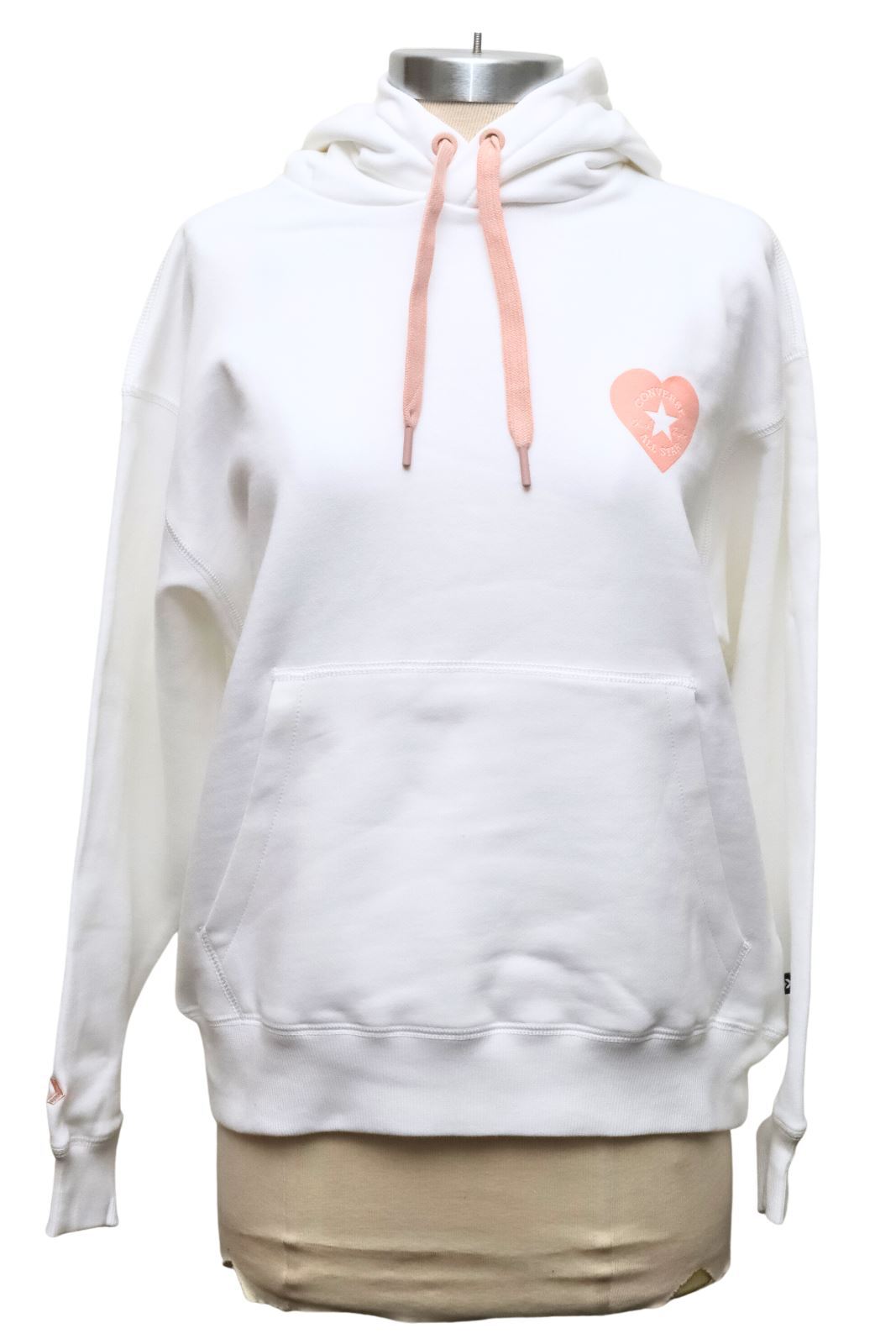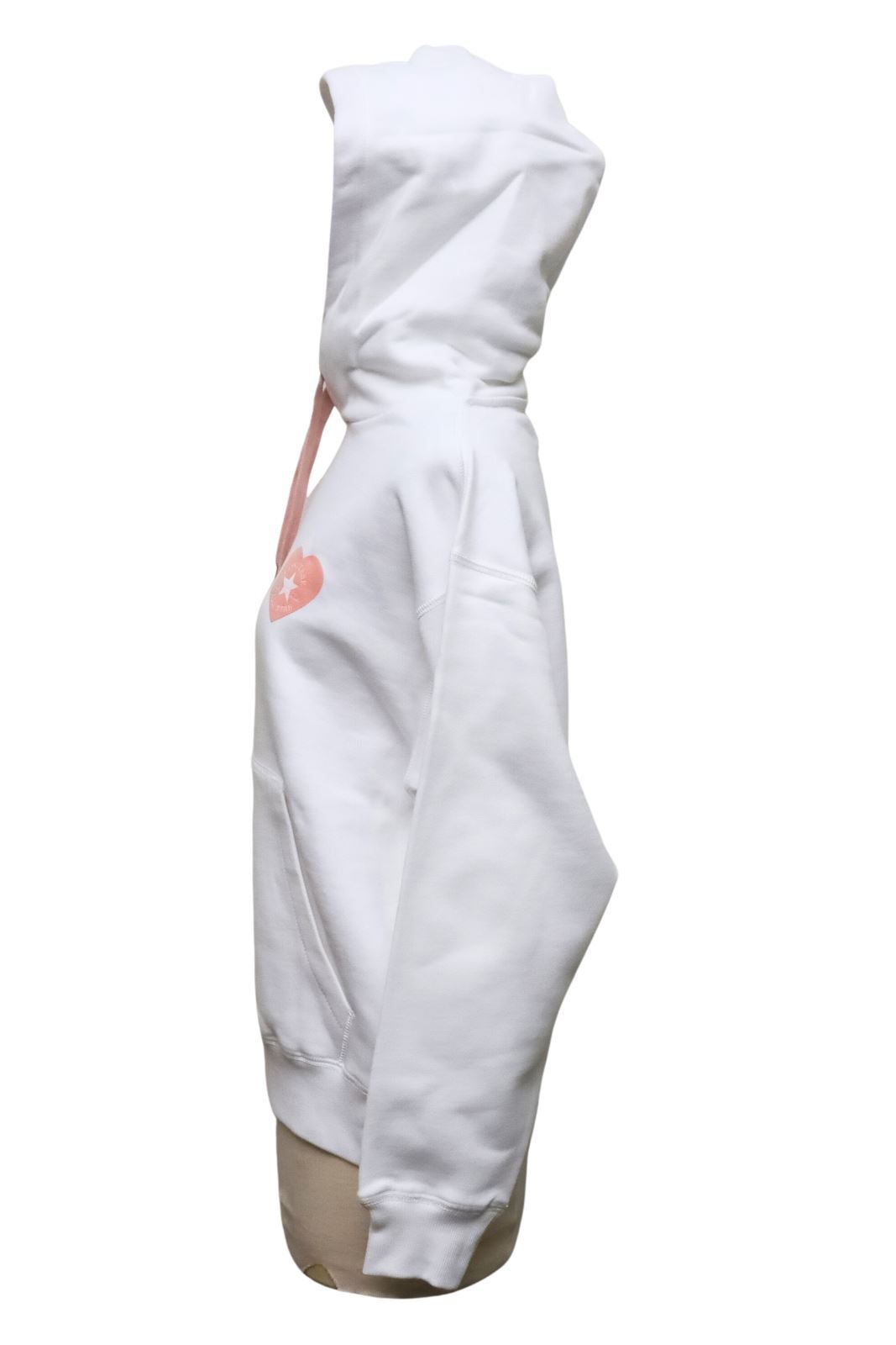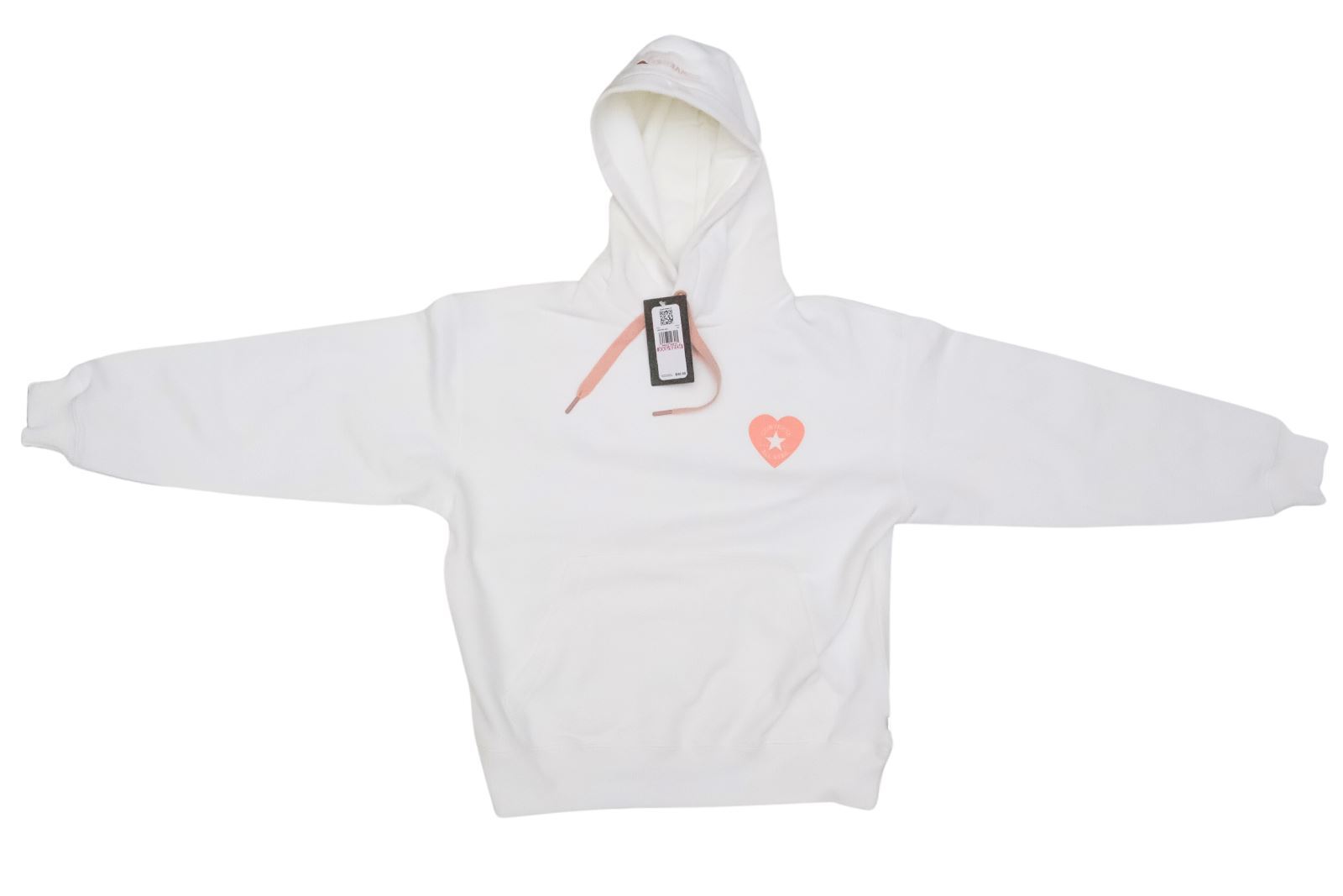 Converse x Valentine Pink Heart White Cotton Kango Pocket Drawstring Hoodie XS