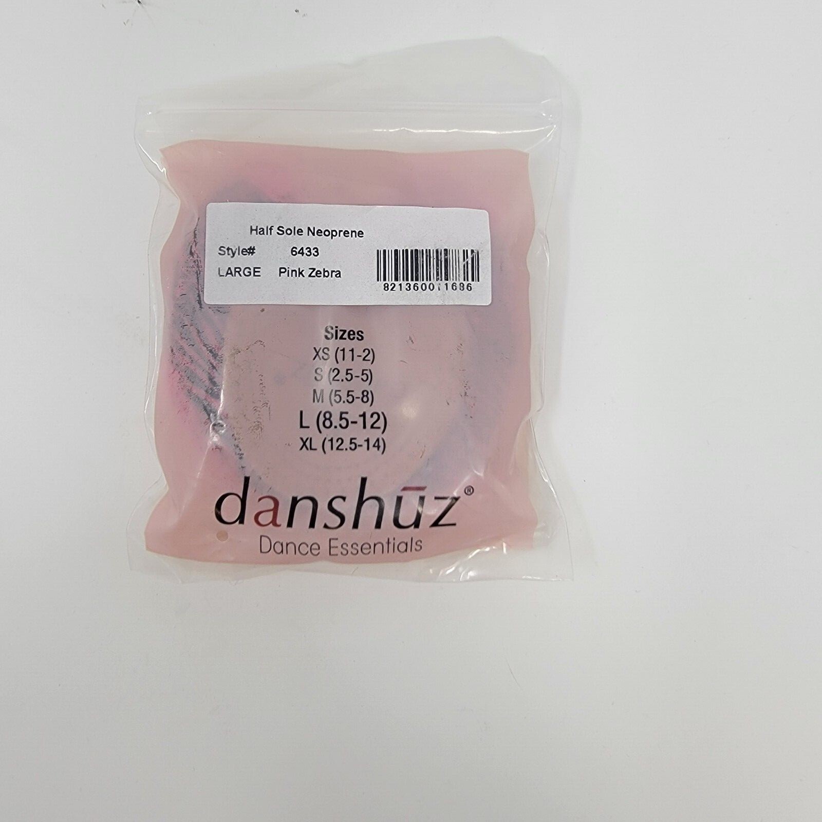 Danshuz Neoprene 6433 Pink Zebra Size L 8.5-12 Half Sole Lyrical Dance Shoes