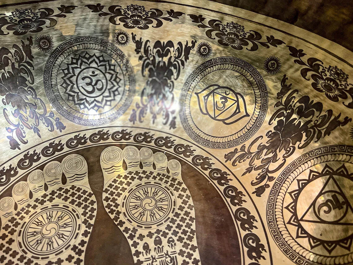 как выглядит 20-Inch Special Buddha Foot Carving Healing Singing Bowl  Handcrafted Tibetan фото