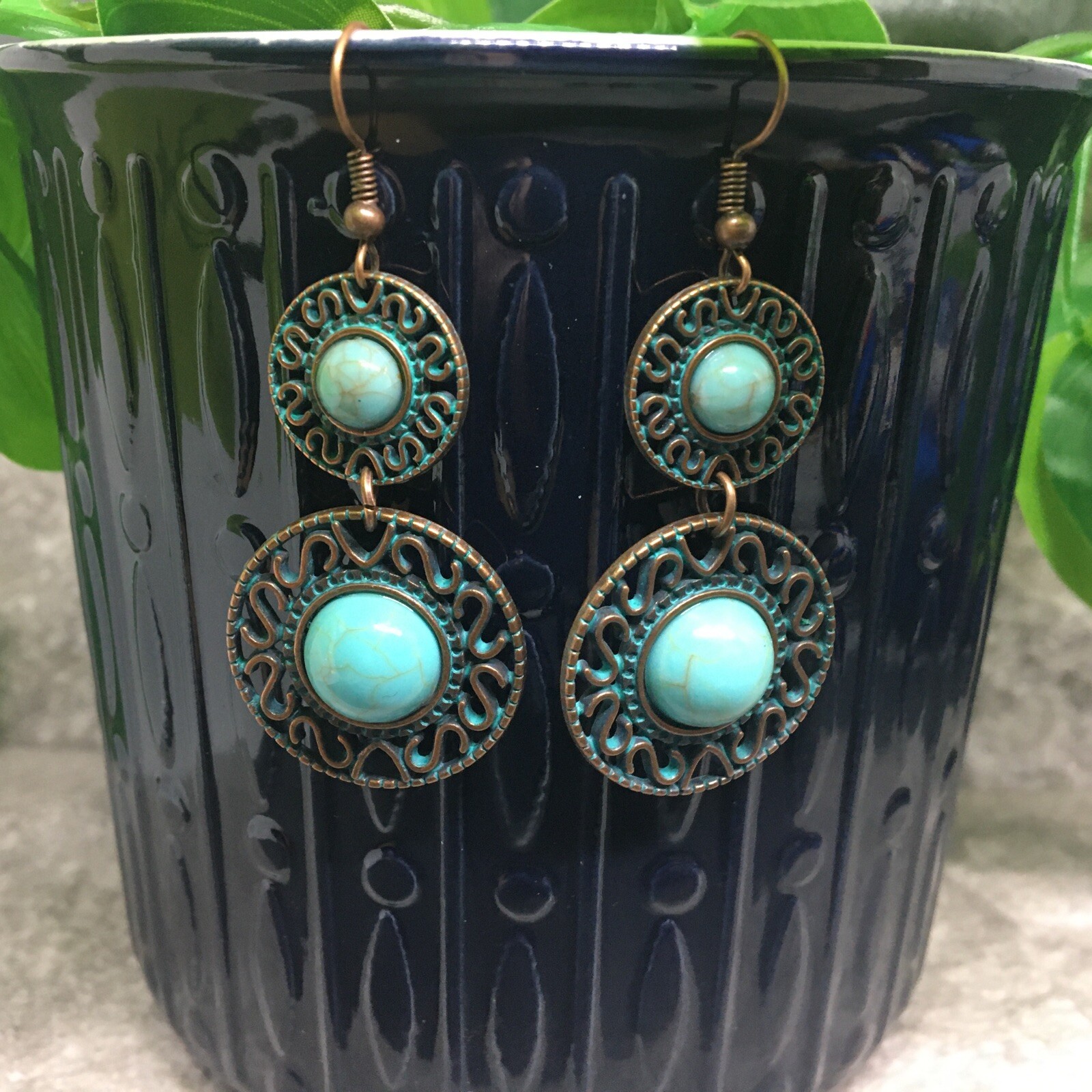 как выглядит 2 Bronze-tone Earring Set Bohemian Retro Drop Dangle Hook New Free Ship 7086 фото