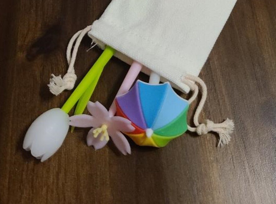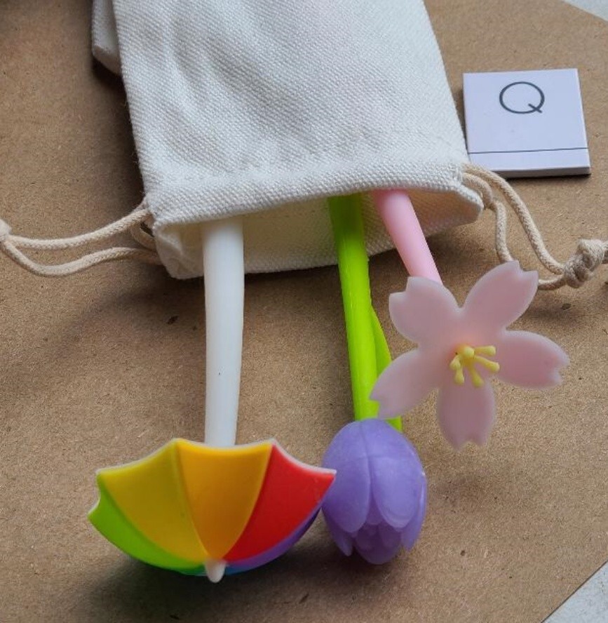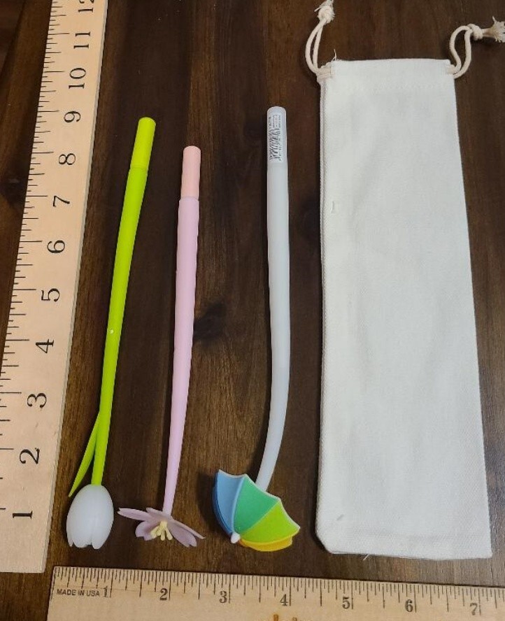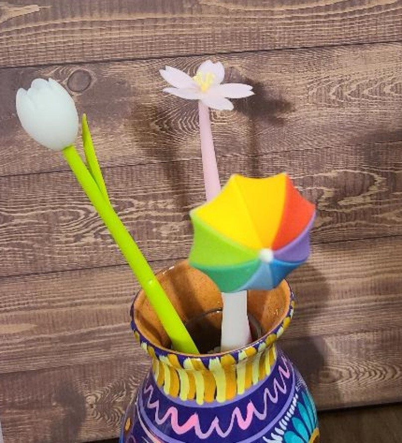 как выглядит Flower PENS Set of 3 with cloth bag light activated soft top NEW q фото