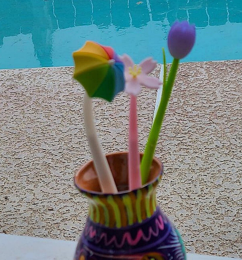 Flower PENS Set of 3 with cloth bag light activated soft top NEW q