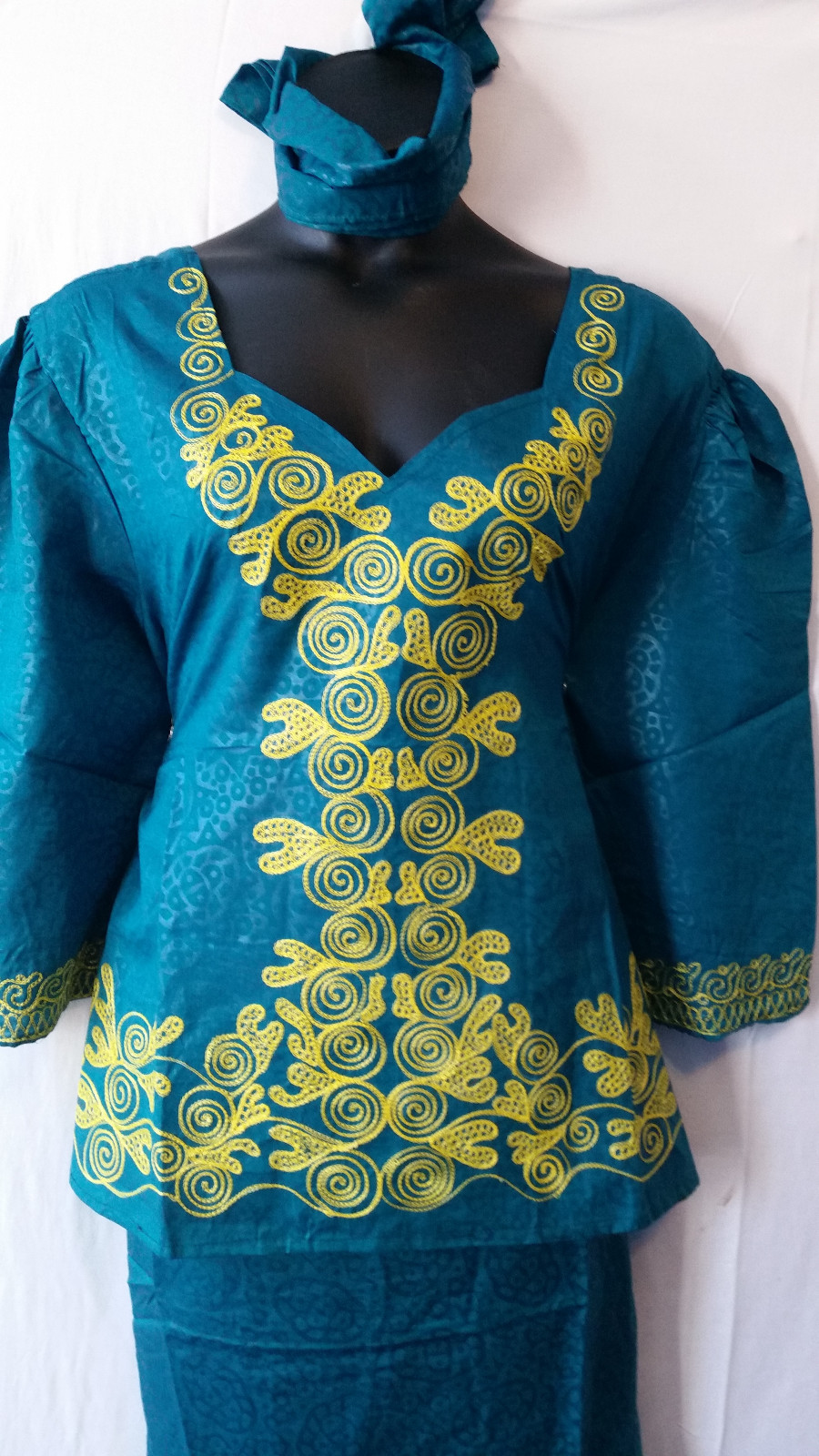 как выглядит Women Clothing African 3 Pcs Skirt Suit Attire Outfit Ethnic H Green Free Size фото