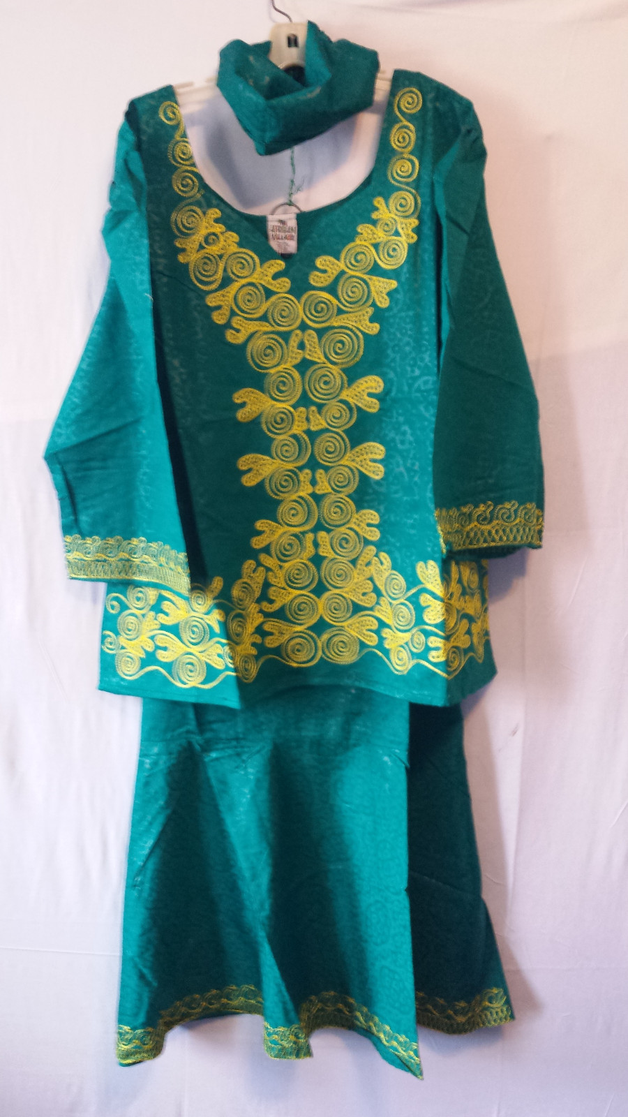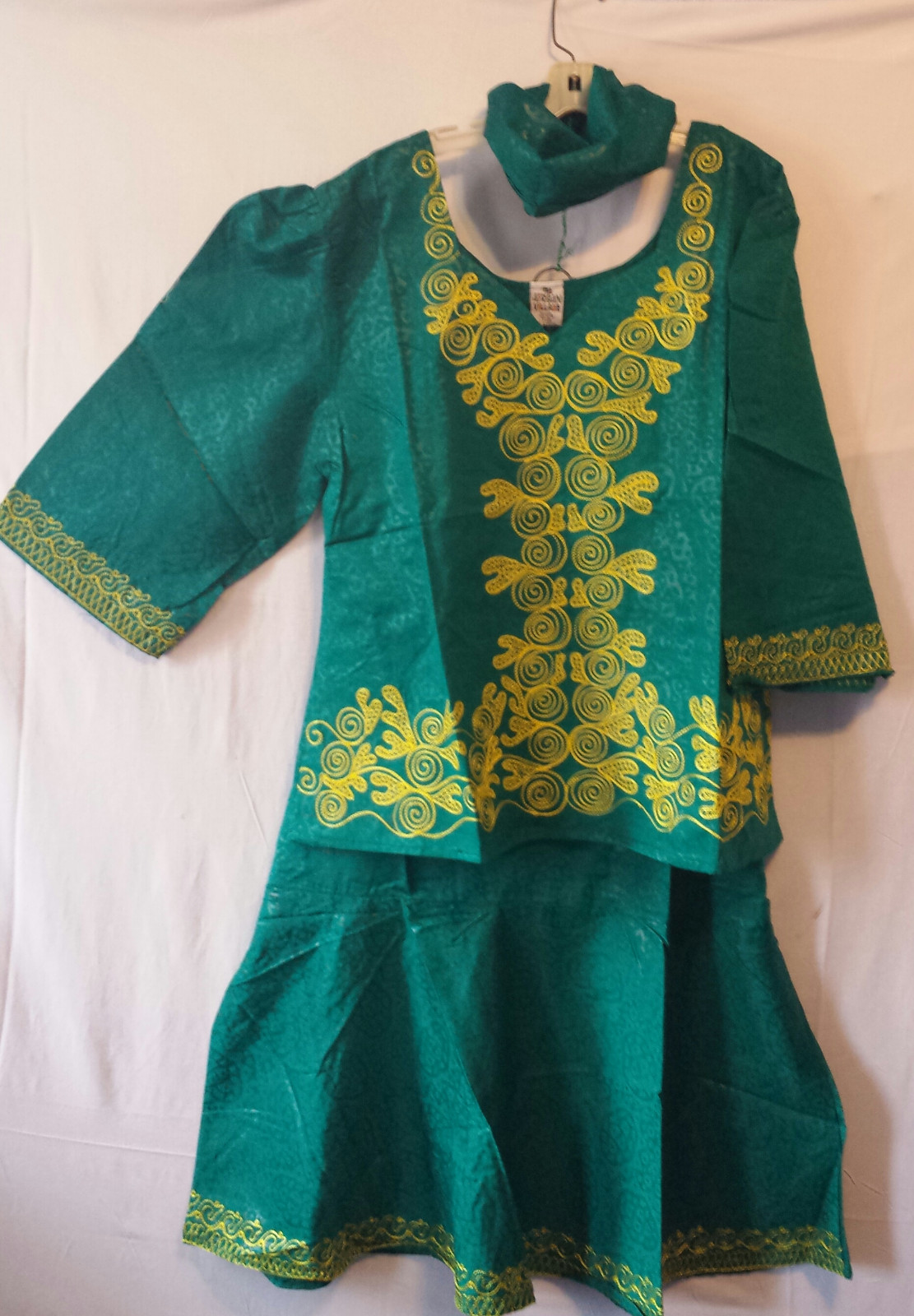 Women Clothing African 3 Pcs Skirt Suit Attire Outfit Ethnic H Green Free Size