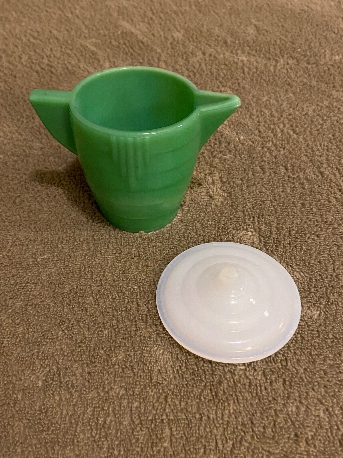 как выглядит Vintage AKRO AGATE Art Deco Toy Teaset Dishes Green Jadeite White 15 Pieces фото
