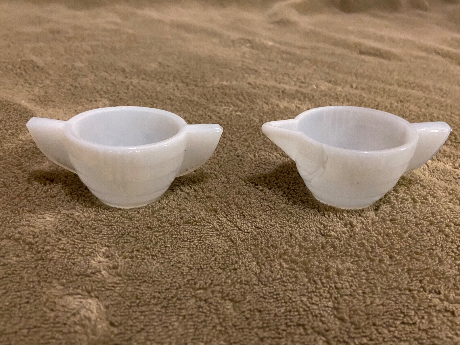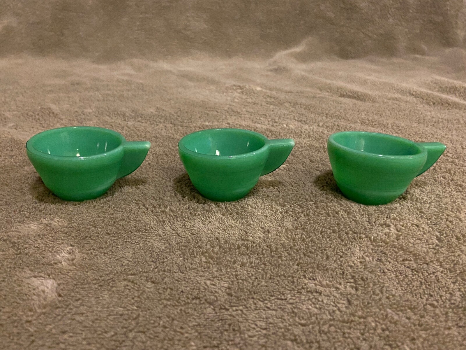 Vintage AKRO AGATE Art Deco Toy Teaset Dishes Green Jadeite White 15 Pieces