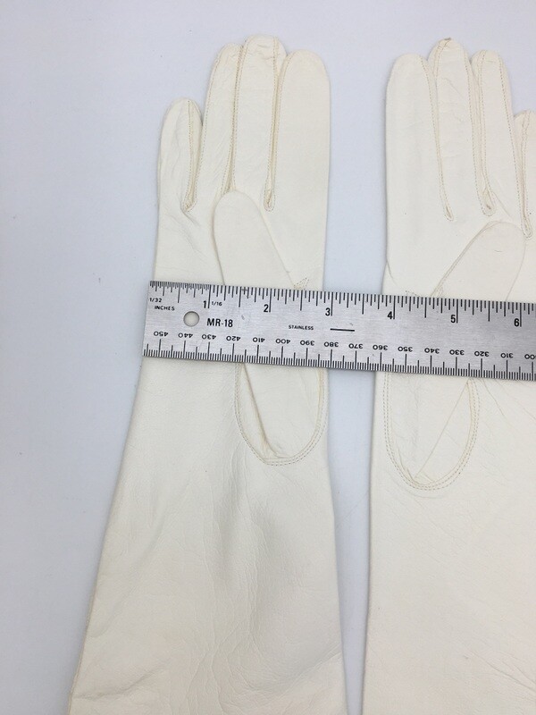 Vintage 1950's White Kidskin Long Gloves Size 6 Made in Belgium 11.5 long