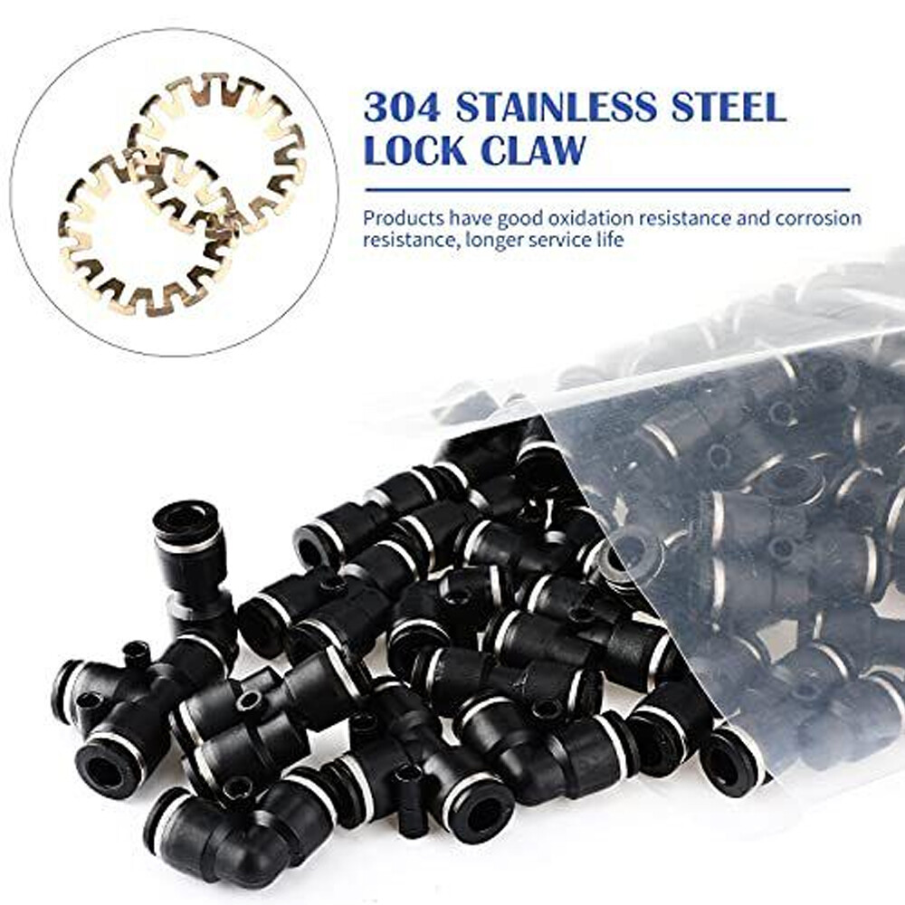 60 Pcs Push to Connect Fittings Air Line Pneumatic Kit Quick Release 1/4" Od New