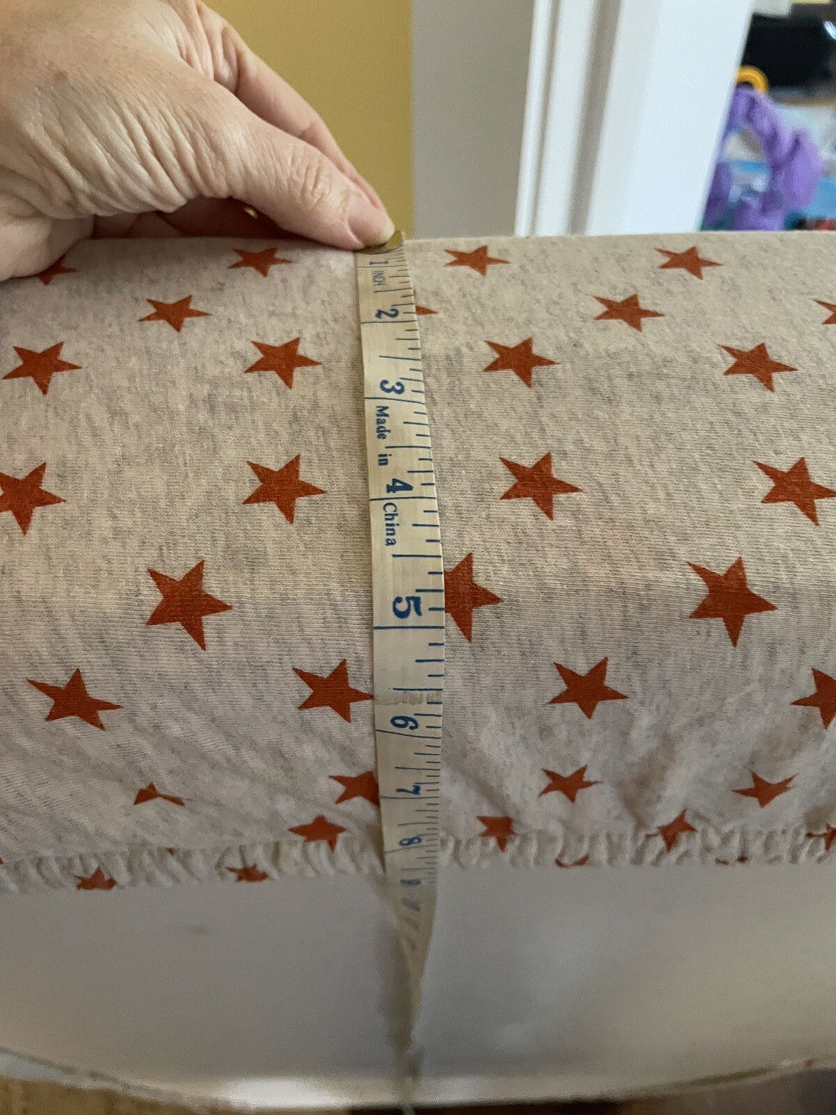 как выглядит Pottery Barn baby heathered jersey star orange fitted crib sheet фото