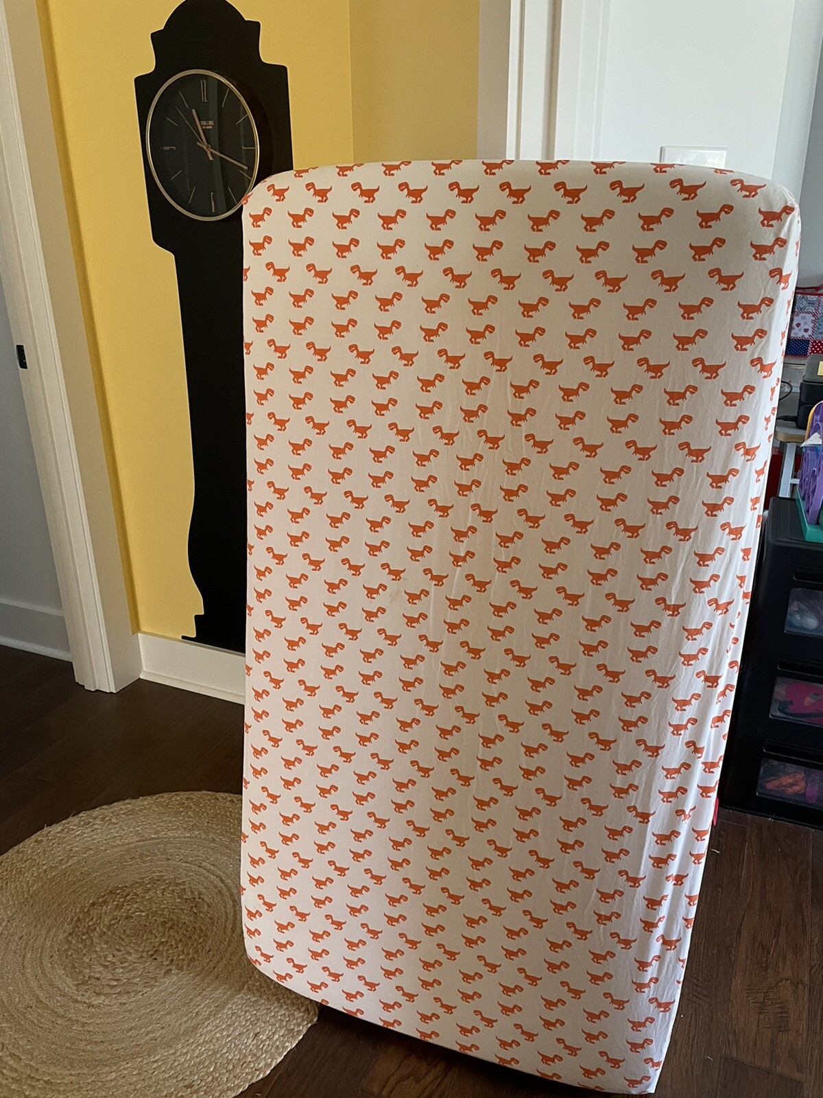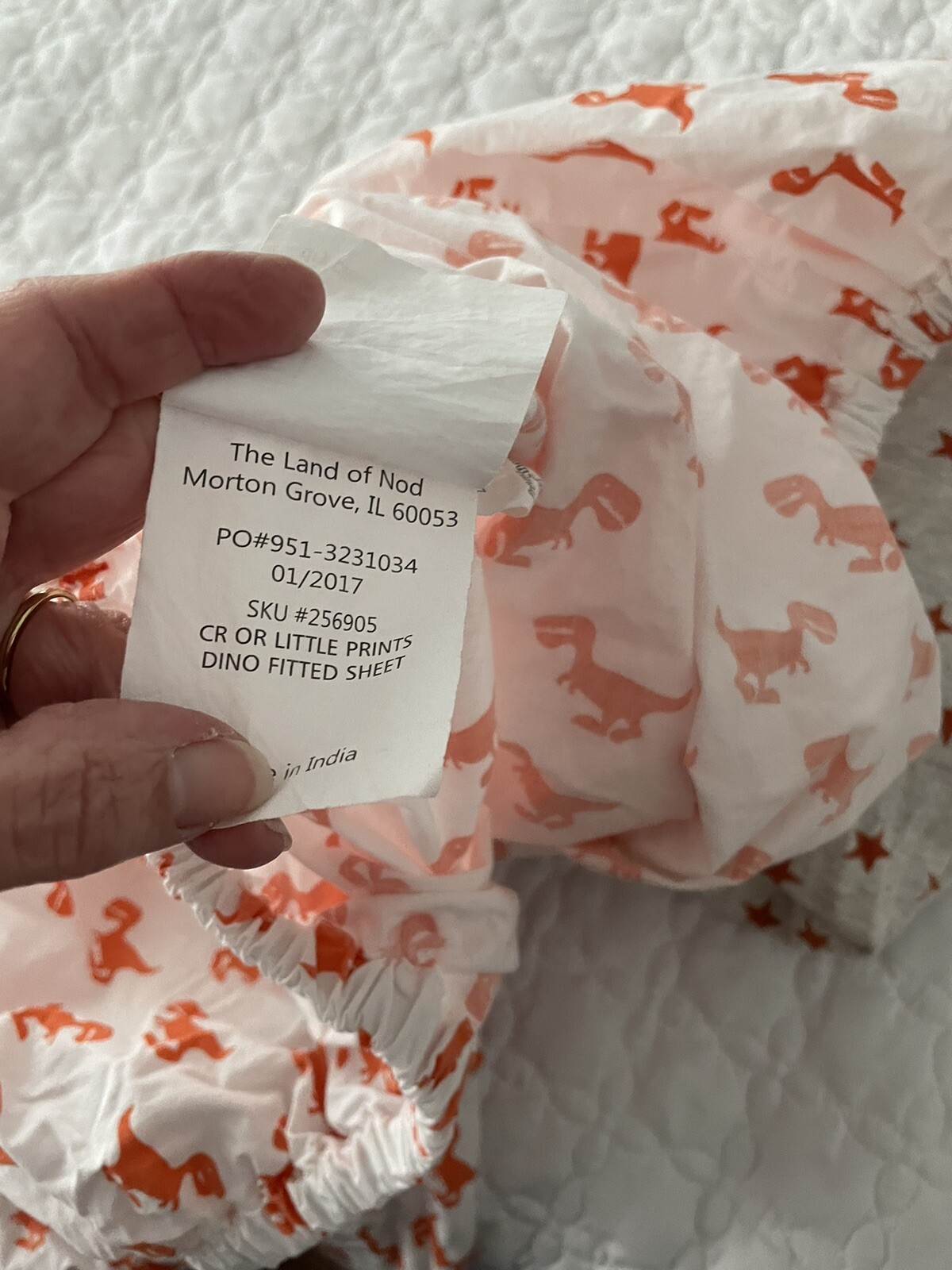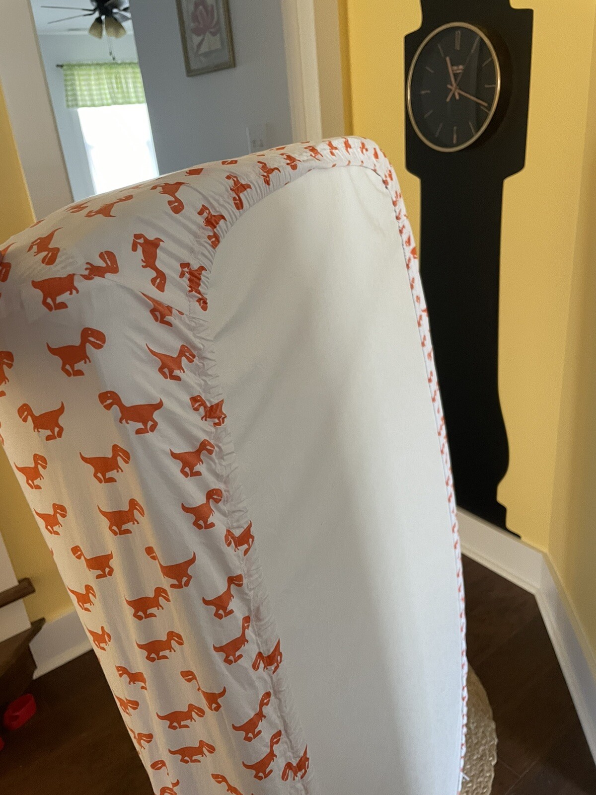 как выглядит The land of nod orange dinosaur fitted crib sheet фото