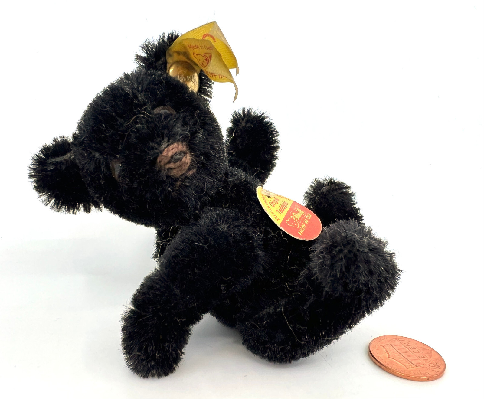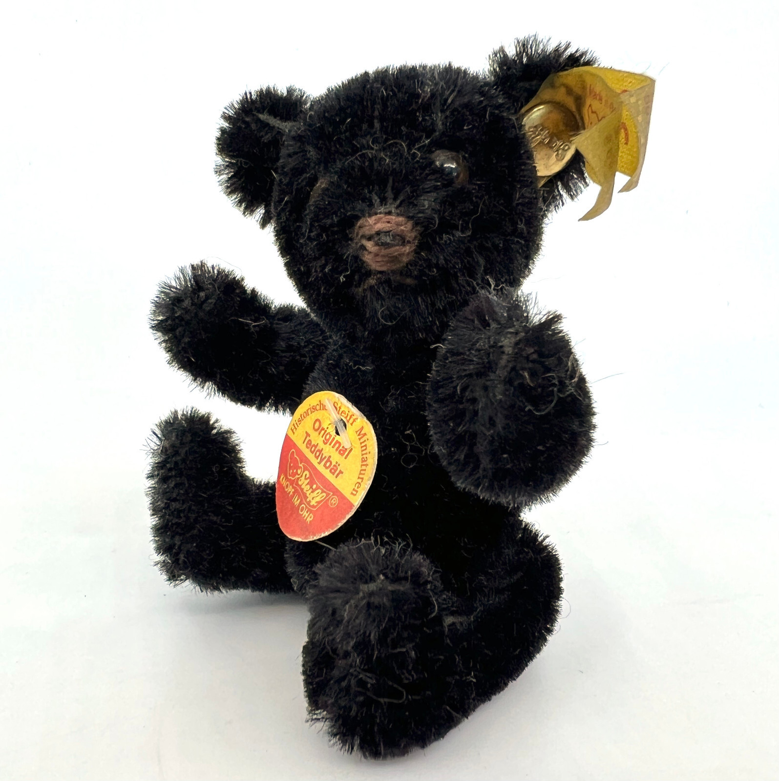 Steiff Orig Schwarz Teddy Bear 1990s Mohair 10cm ID Button Tags Historic Mini