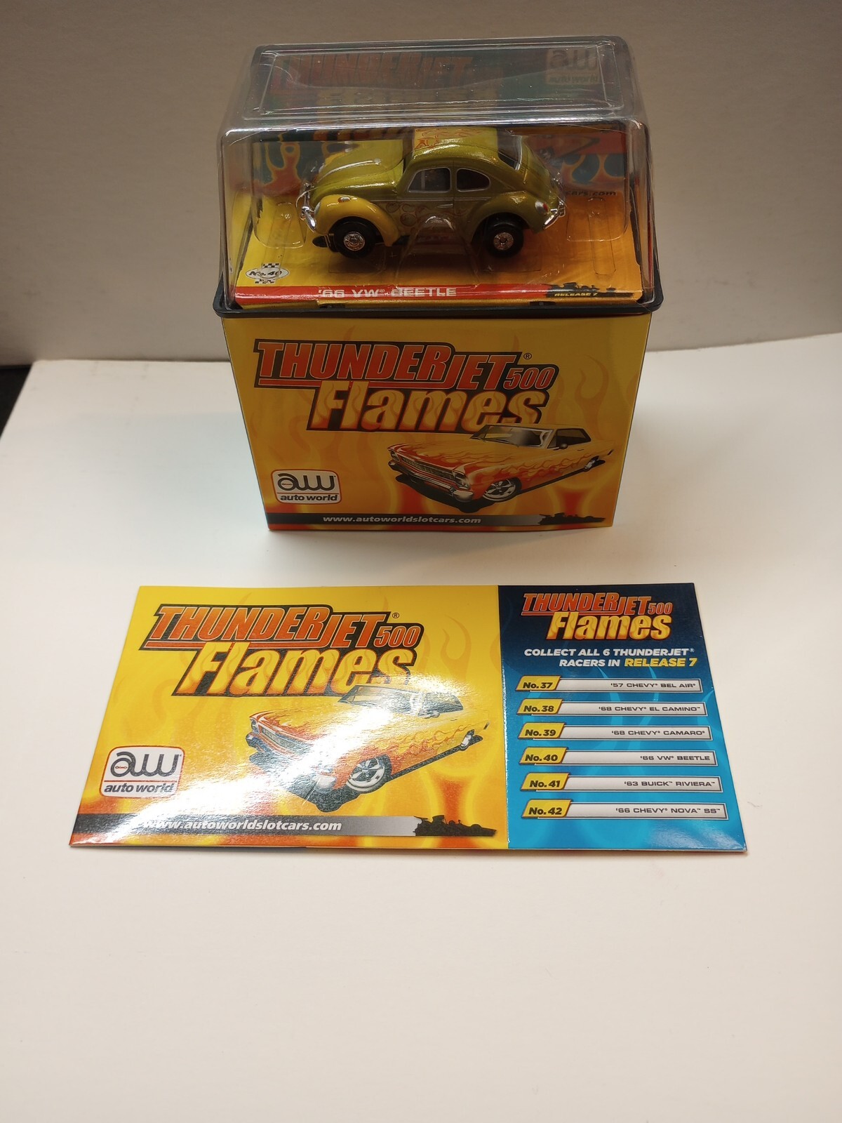 Auto World Slot Car Racer '66 Lime Green Flamed VW Beetle RARE Rel.7 2010
