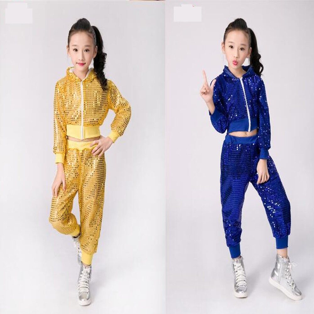 New Hip-Hop Jazz Sequins Performance Costumes Dancewear Girls Boys for Kid