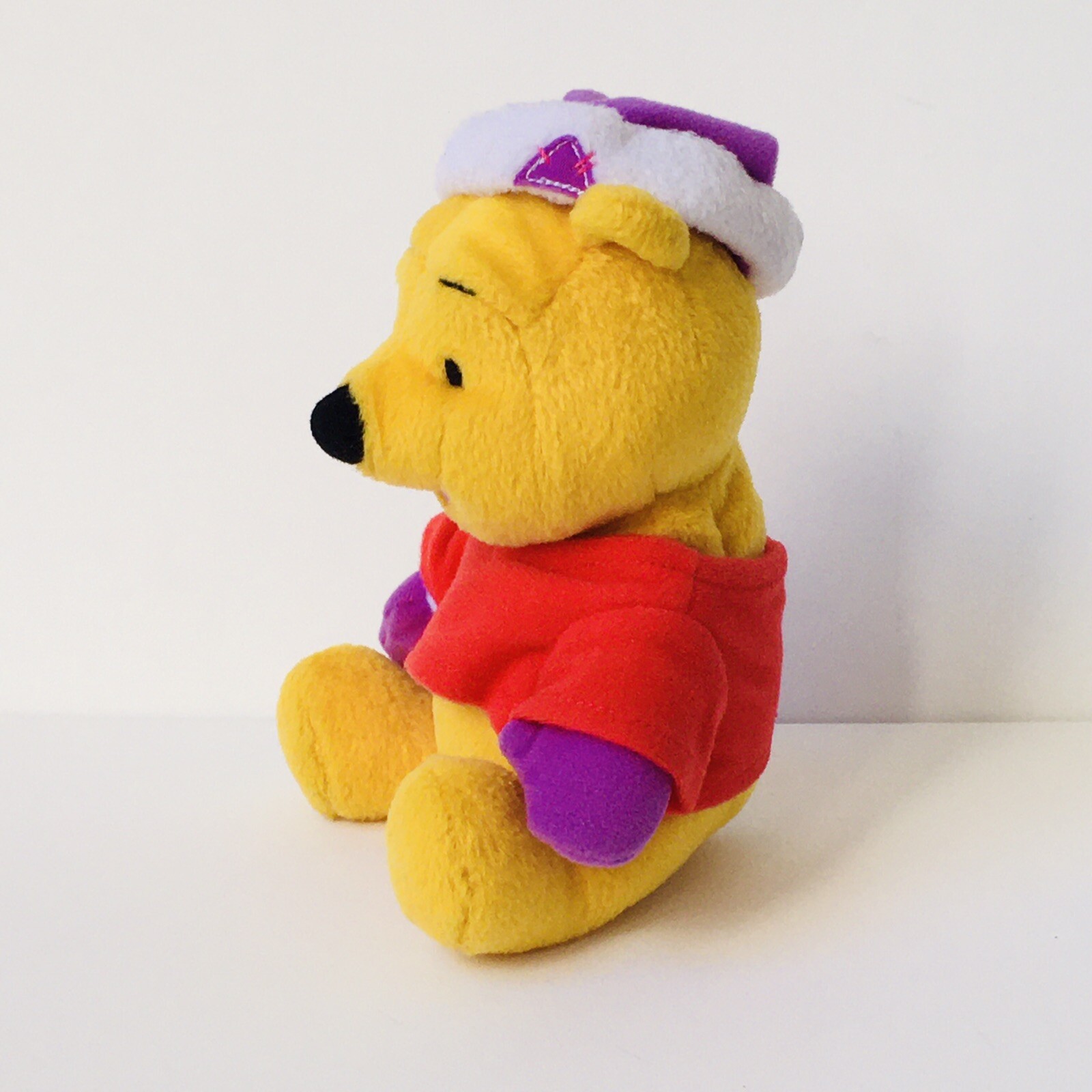 • Disney Winnie the Pooh Beanie Bear Plush with Purple Hat 2002 Vintage T-408