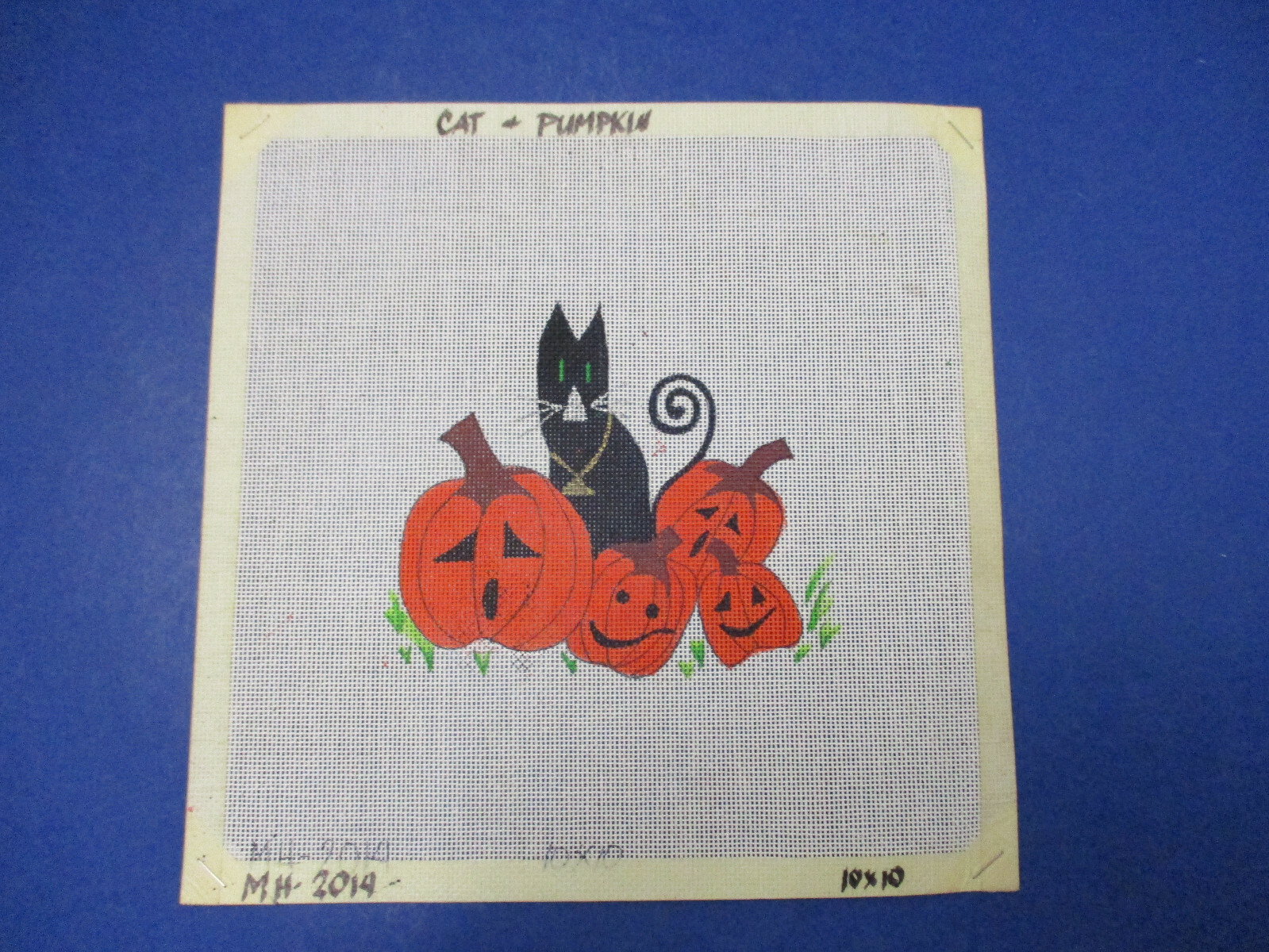 Handpainted Needlepoint Canvas Black Cat Jack O' Lanterns 18 Mesh Halloween