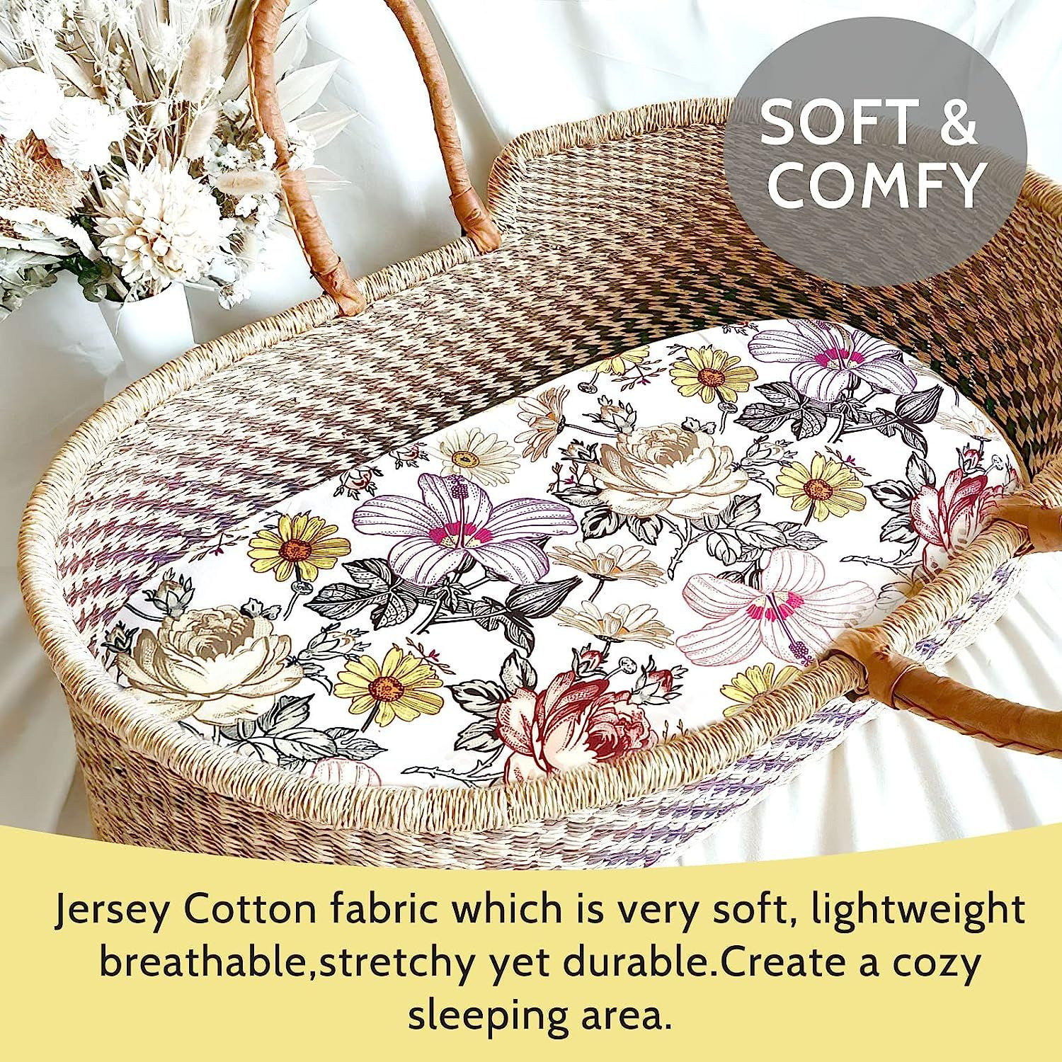 Bassinet Sheet, Jersey Cotton for Baby 32inch X 16inch X 3inch, Floral Boho