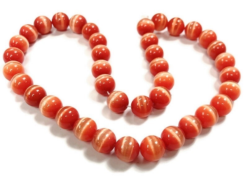 как выглядит 38 Cats Eye Fiber Optic Glass Hyacinth 10mm. Smooth Round Beads 2608 фото