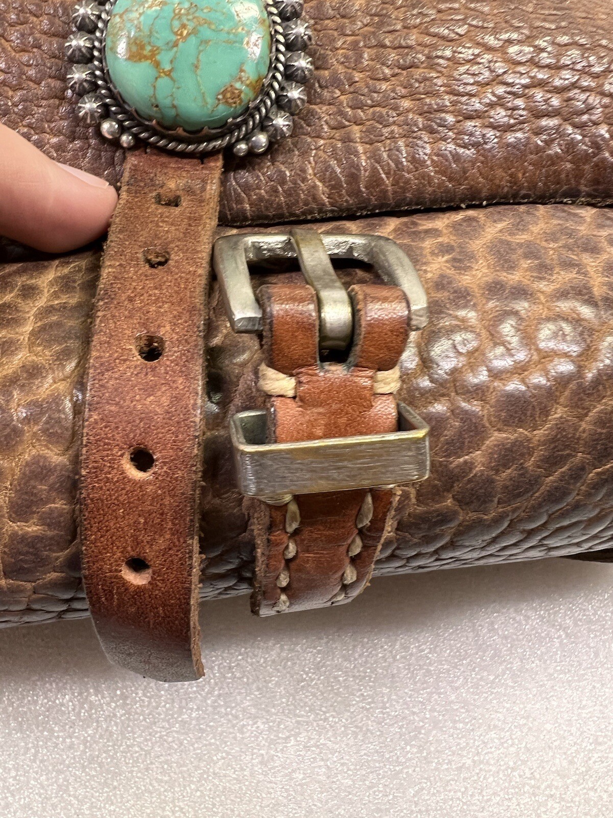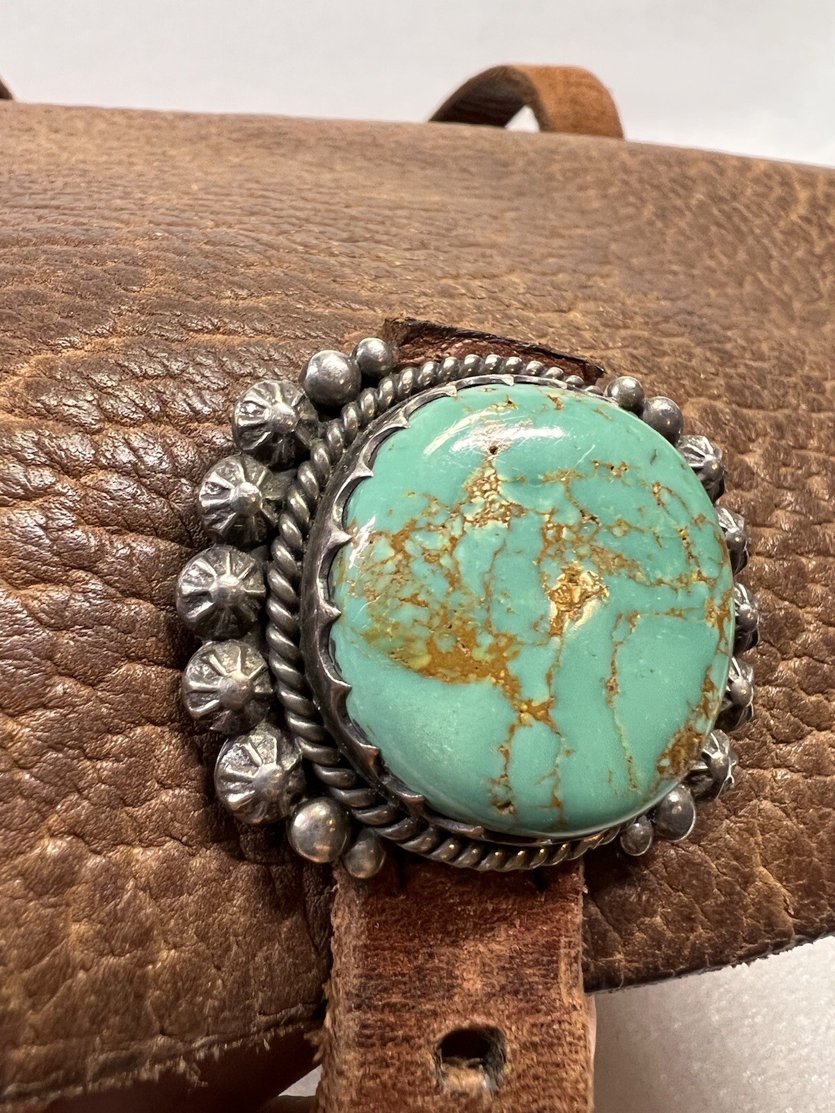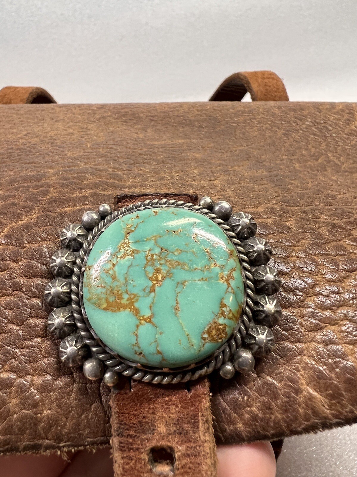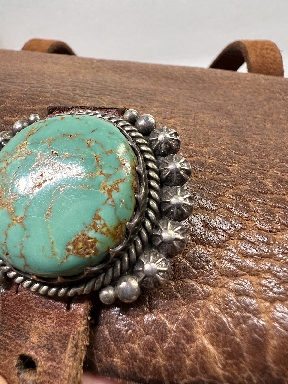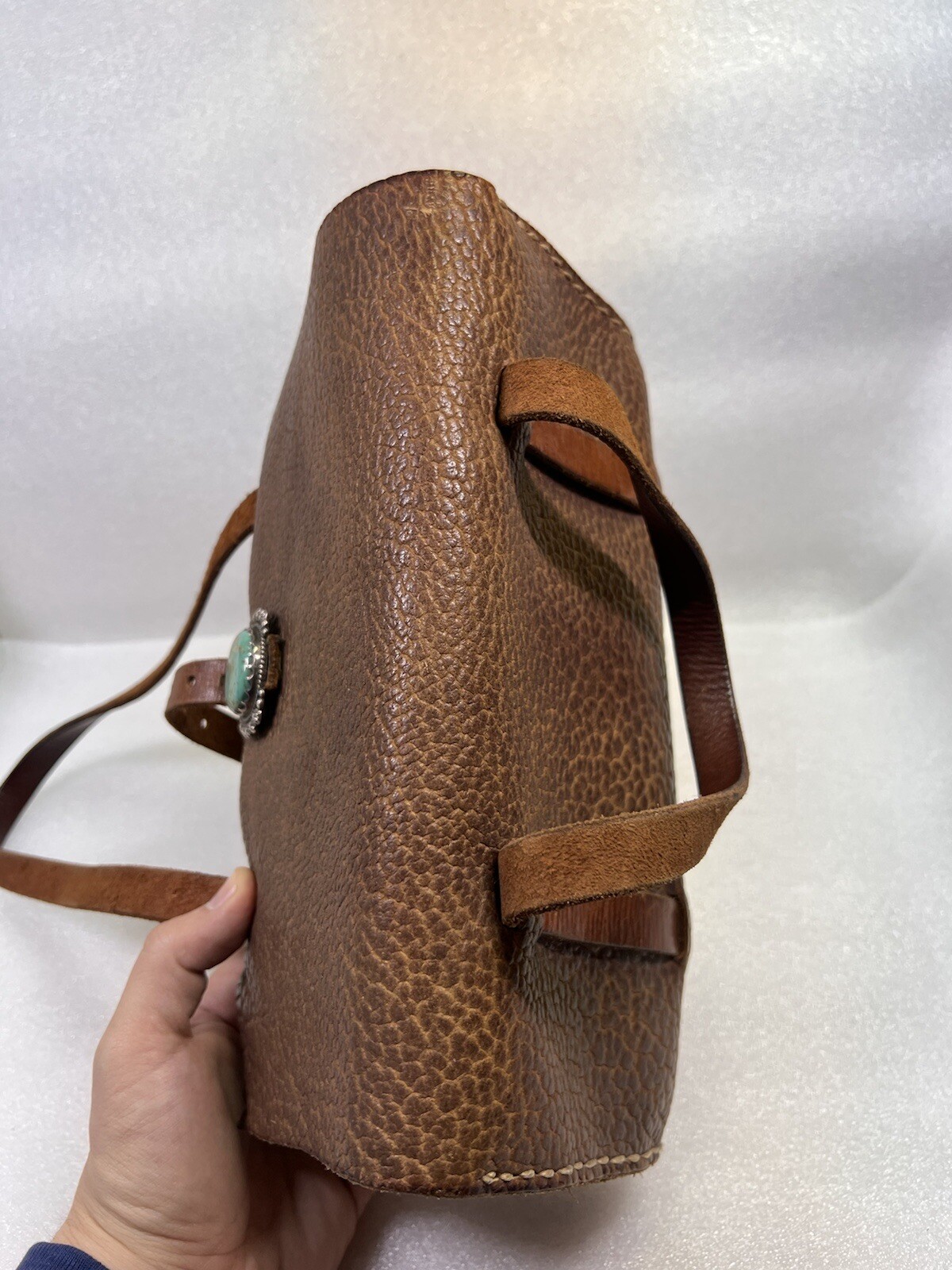 как выглядит RARE Native American Zuni Western Leather Turquoise Sterling Silver Purse Bag фото