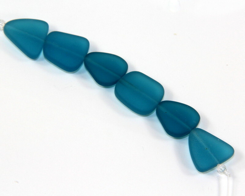 Small Free Form Flat Beads, Teal w/Frosted Matte Finish, 6 Beads