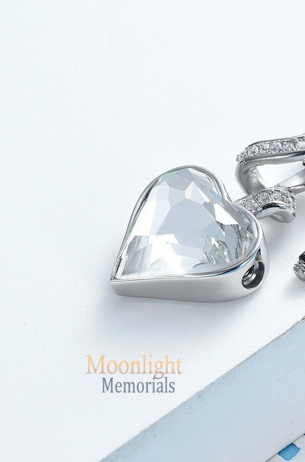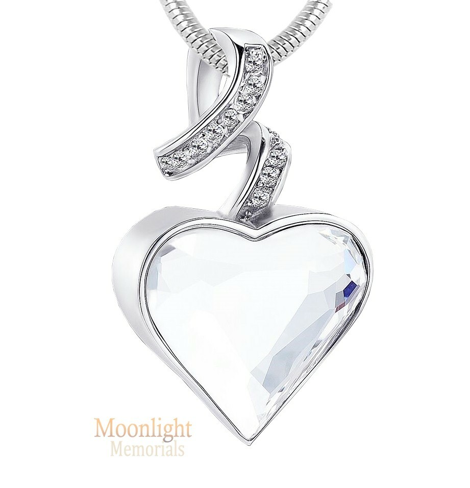 New Heart Crystal Ribbon Cremation Urn Keepsake Ashes Memorial Necklace
