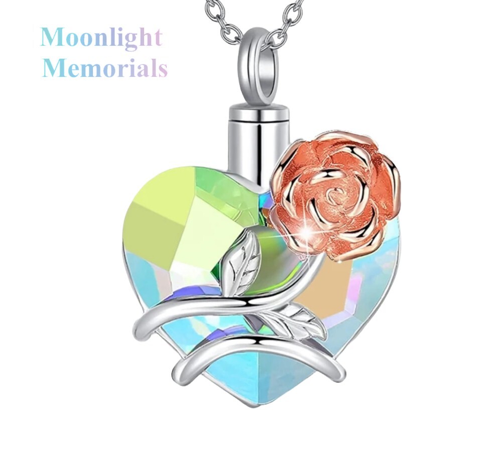 New Love Rose Heart Blue Cremation Urn Keepsake Ashes Memorial Necklace