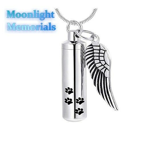 New Paw Wing Pet Cat Dog Cylinder Urn Keepsake Ashes Memorial Necklace