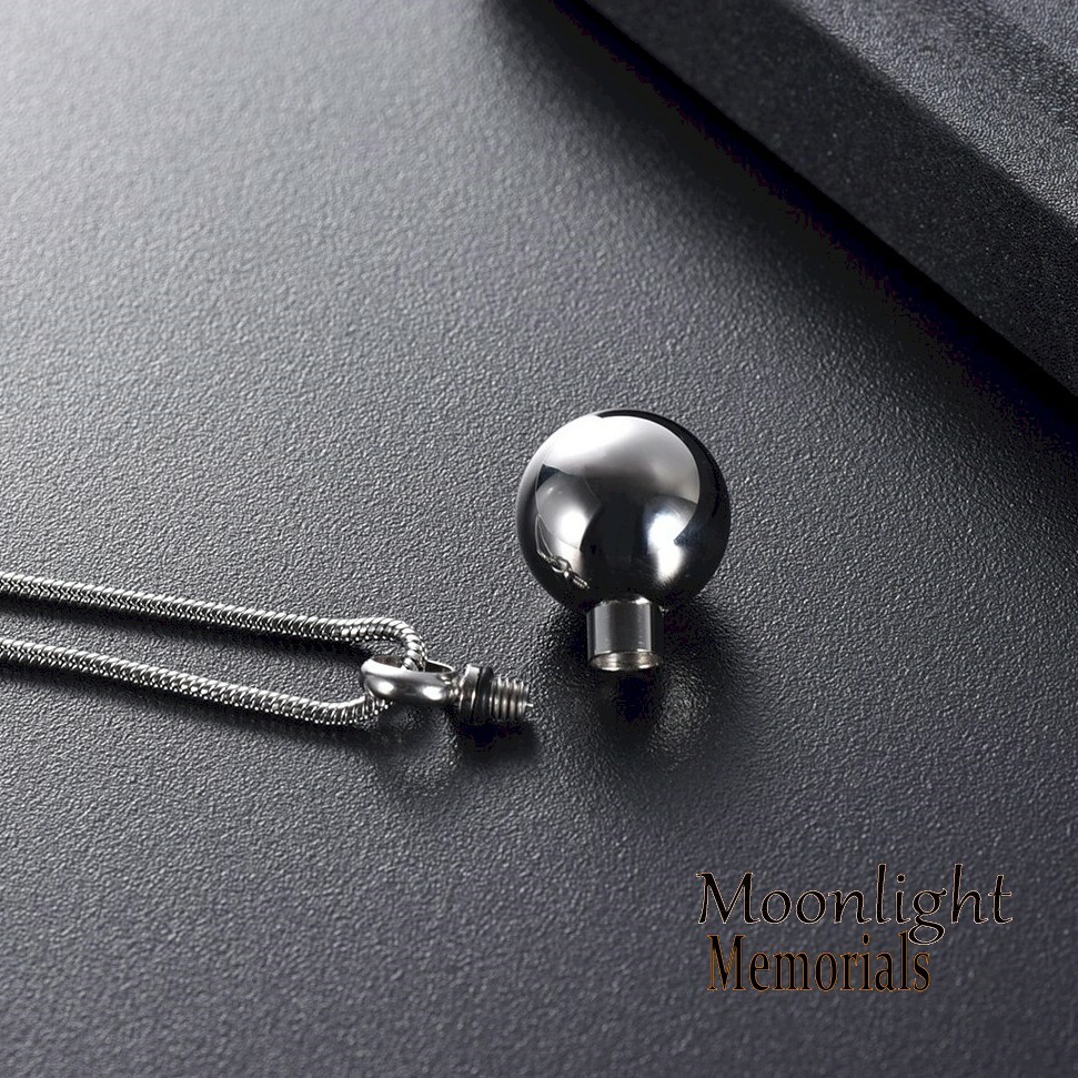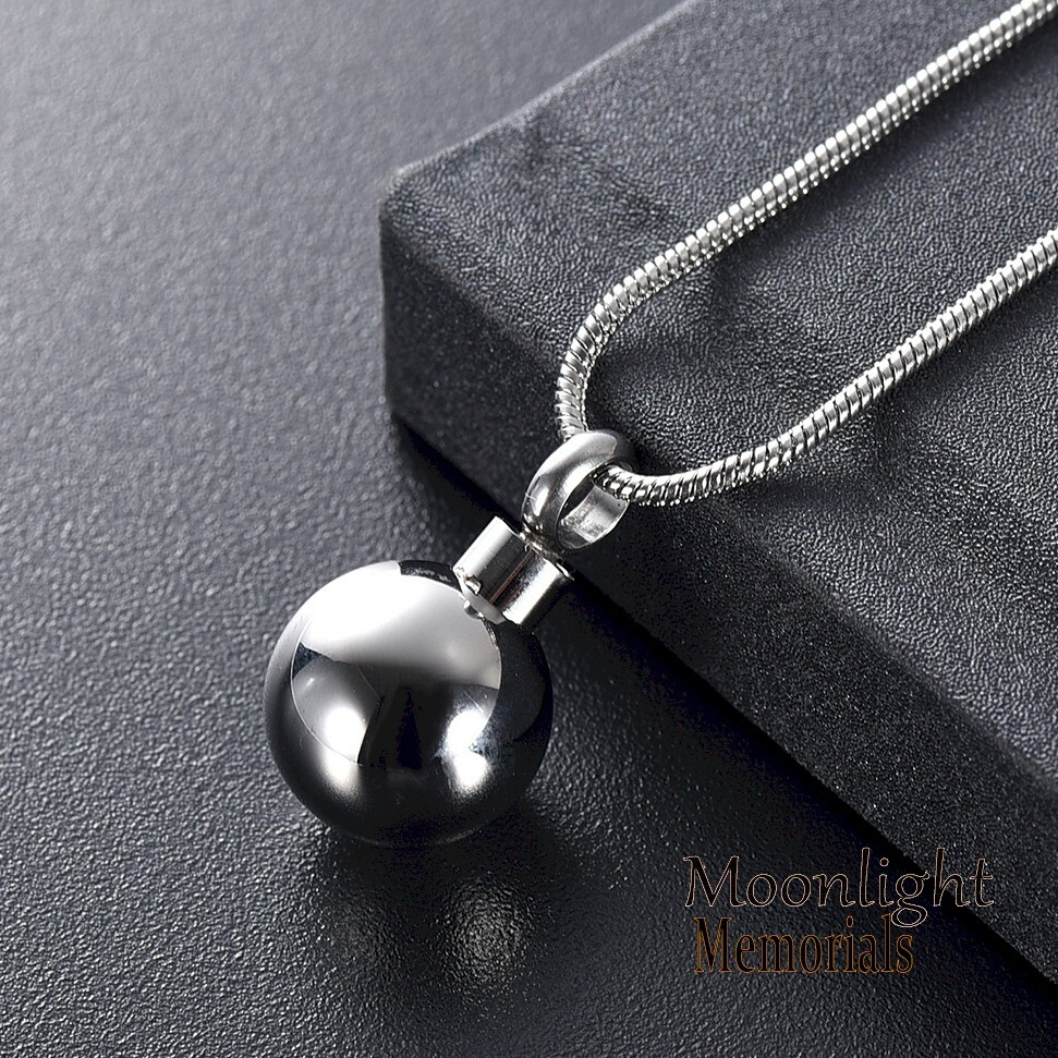 New Polished Stainless Steel Ball Cremation Urn Keepsake Ashes Memorial Necklace