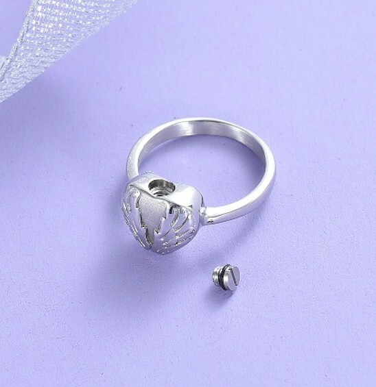 New Angel Wings Stainless Steel Cremation Ash Urn Memorial Keepsake Ring