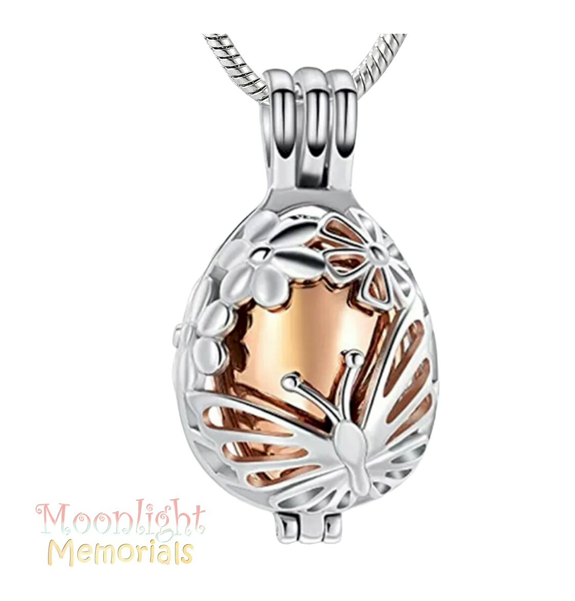 New Butterfly Flower Locket Cremation Urn Keepsake Ashes Memorial Necklace
