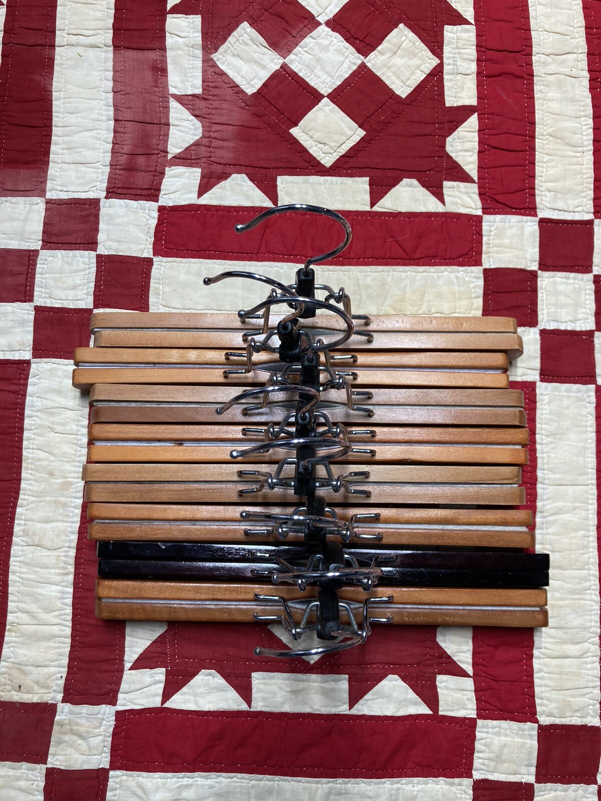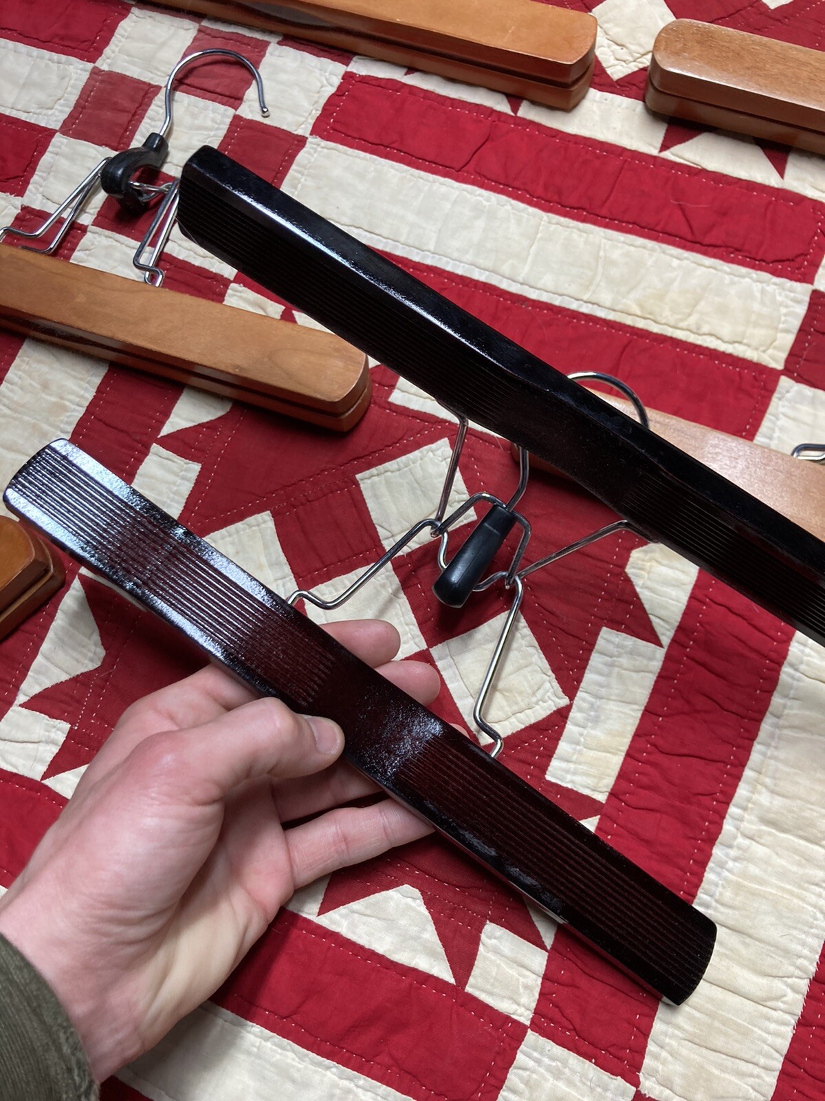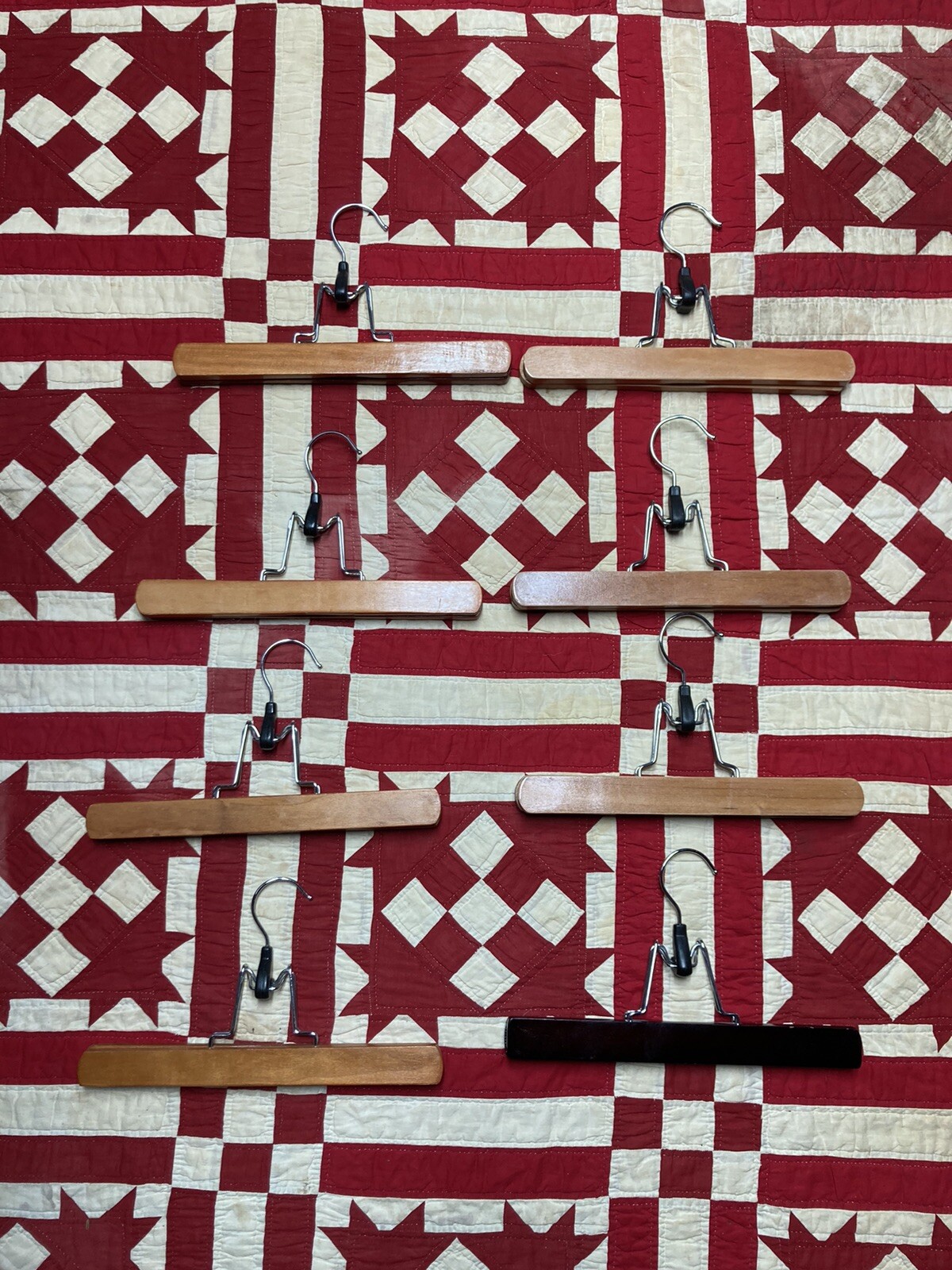 Lot of 8 Vintage Wooden Hangers 11 Pants Skirts Trousers Clamping Clamps FELT