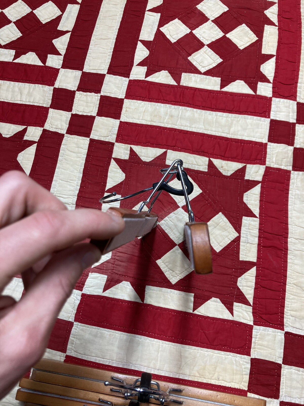 как выглядит Lot of 8 Vintage Wooden Hangers 11 Pants Skirts Trousers Clamping Clamps FELT фото