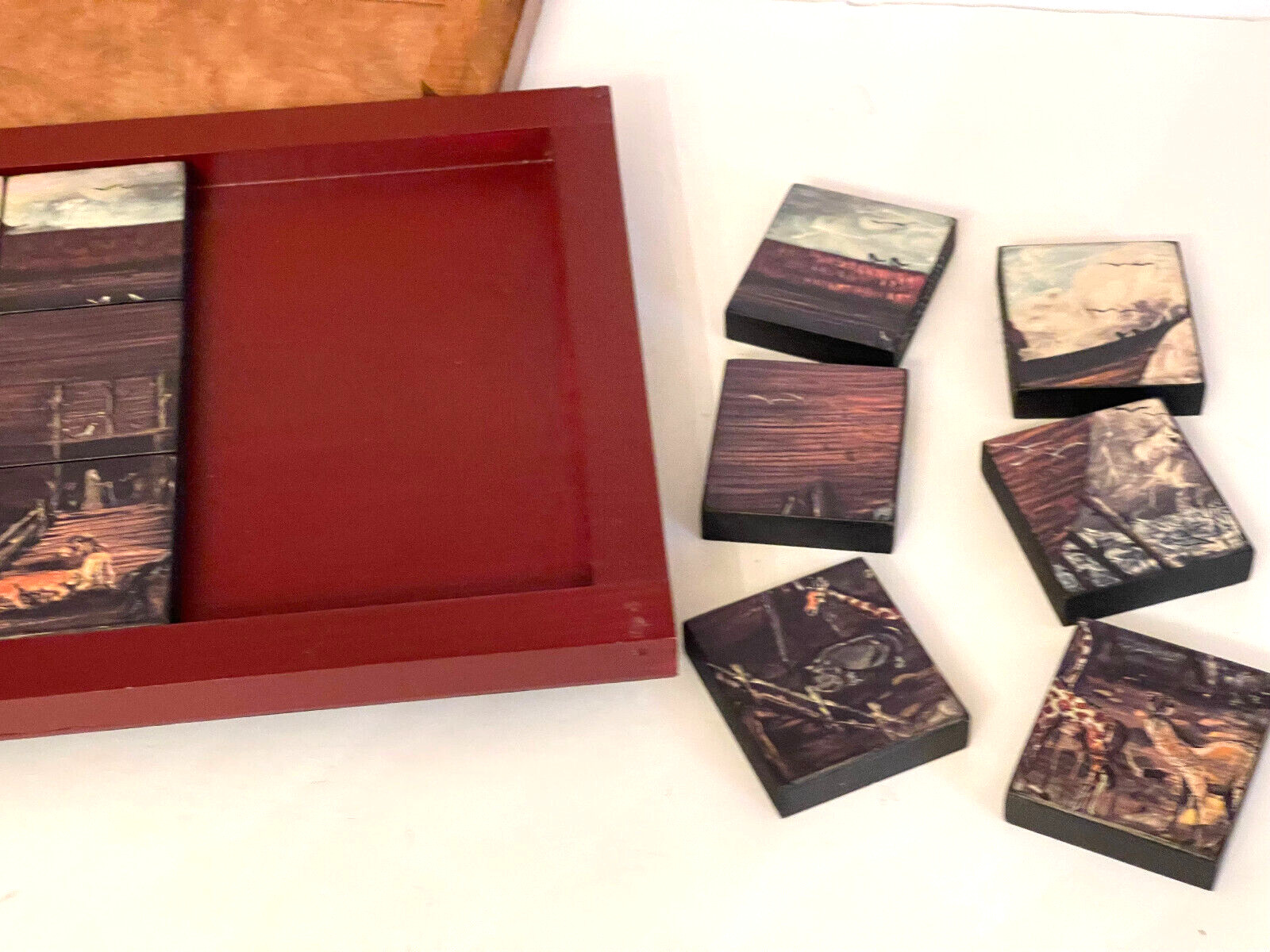 как выглядит VINTAGE AMERICAN FOLK ART NOAHS ARK PUZZLE IN WOOD BOX. MAUDE RISHER CIARDI. фото