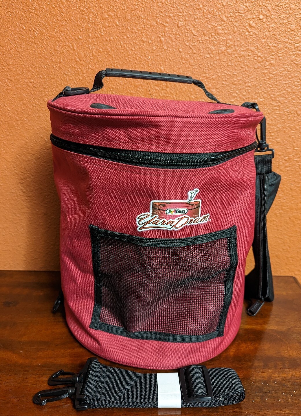 как выглядит ArtBin Yarn Drum Portable Knitting Crochet Storage Poly Canvas Tote Bag Red фото
