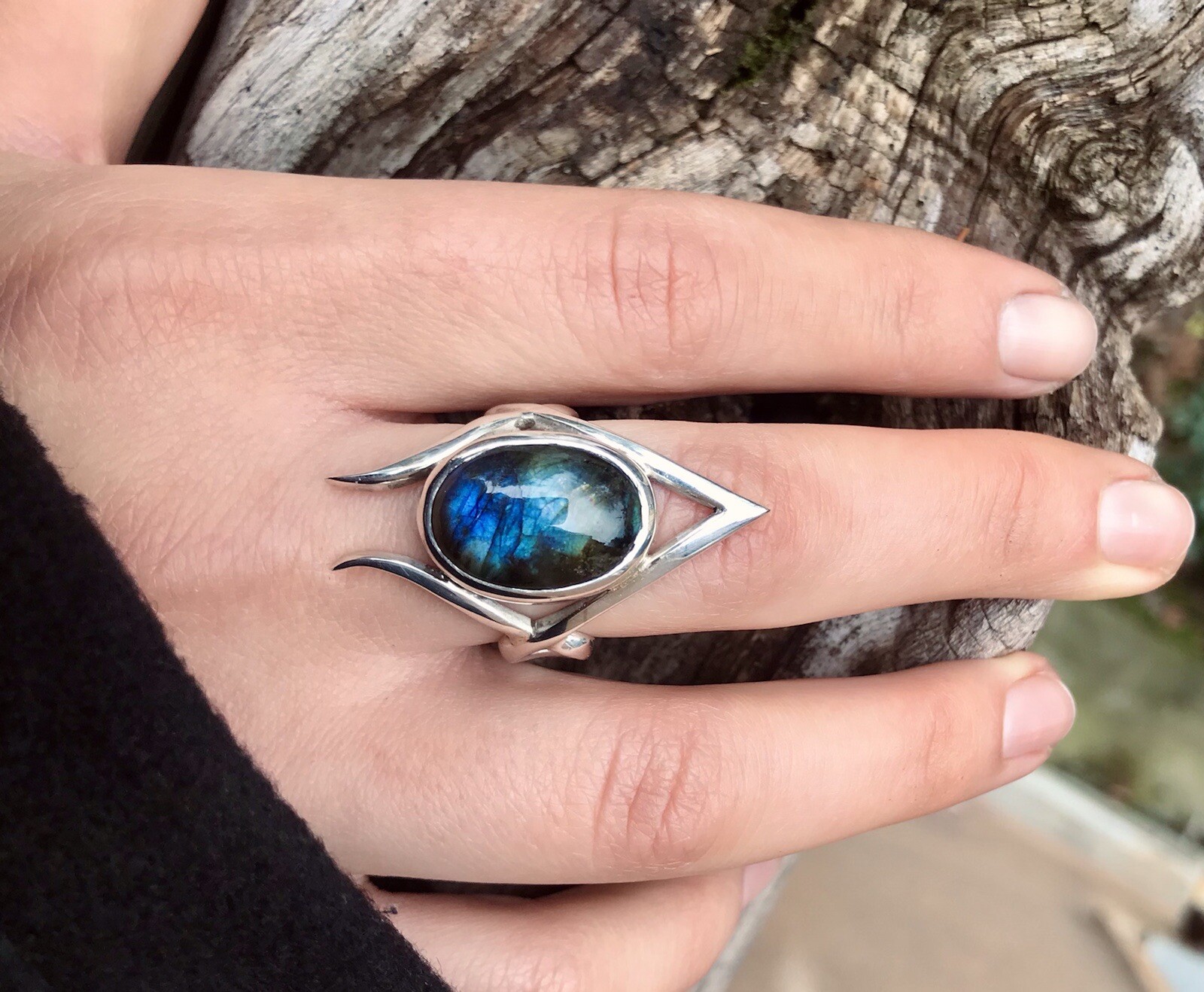 как выглядит Handmade silver ring with labradorite gemstone фото
