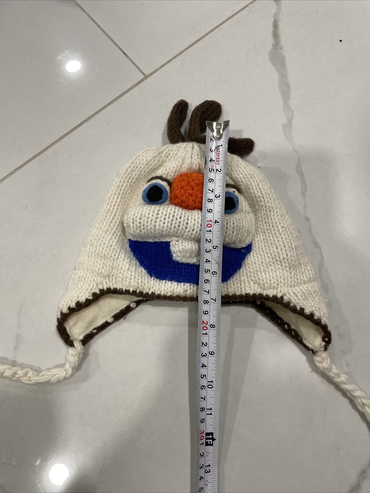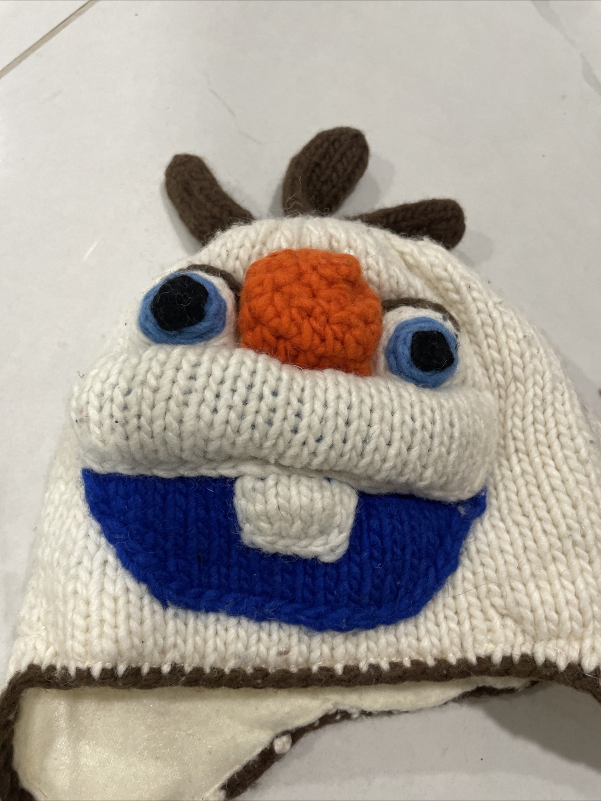 Funny Hat Hand Knitted Winter Beanie Toboggan Hat for Children Blue Orange Face