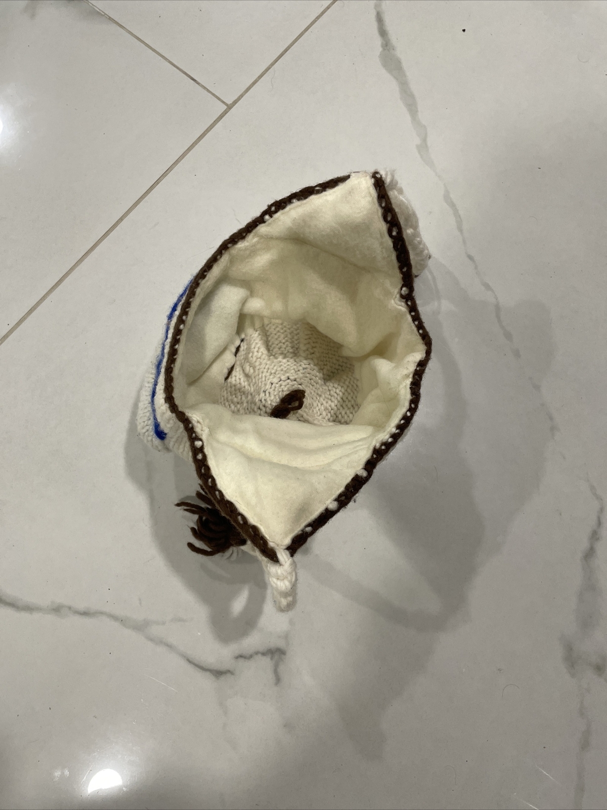 как выглядит Funny Hat Hand Knitted Winter Beanie Toboggan Hat for Children Blue Orange Face фото