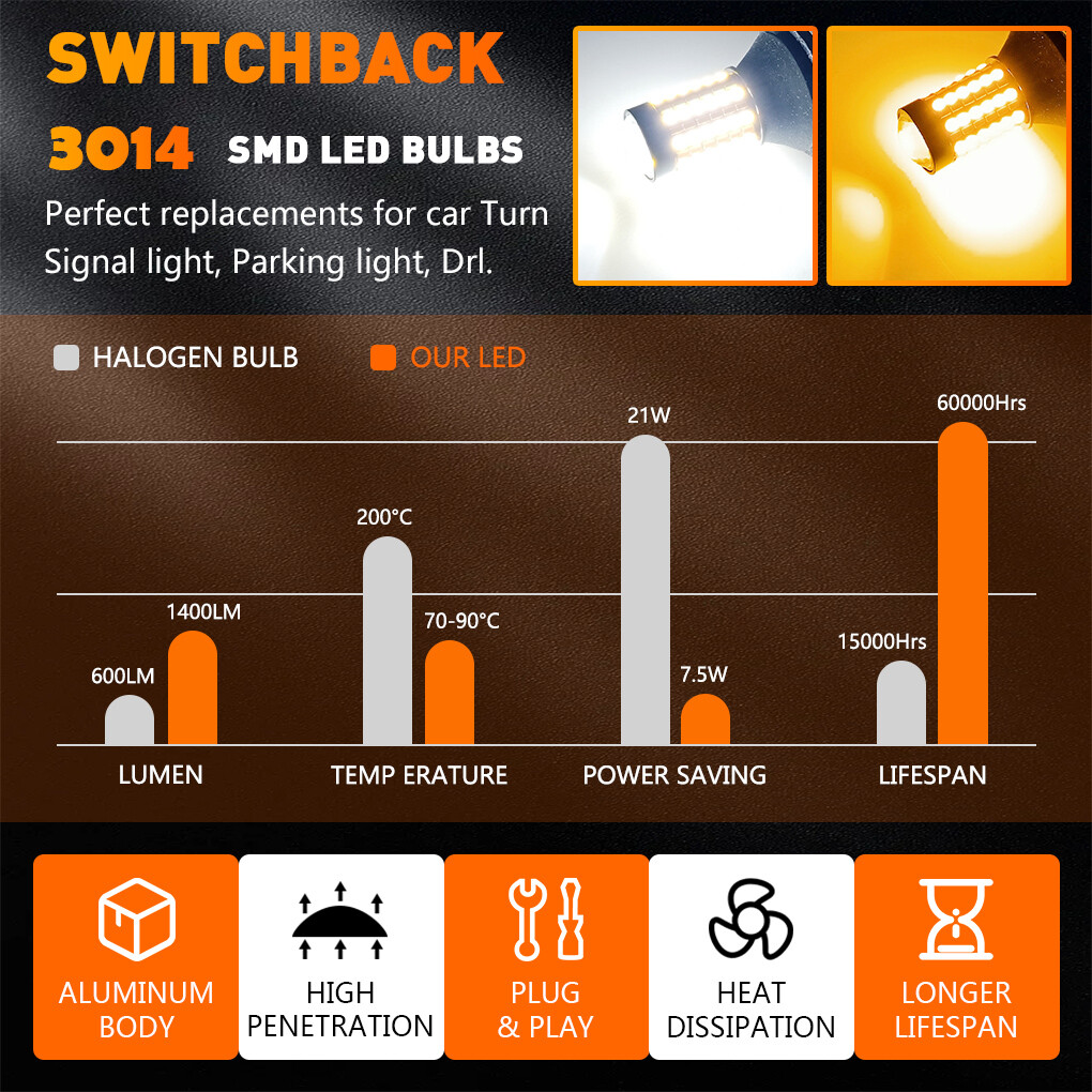 3157 3156 Switchback LED Turn Signal Lights DRL Bulbs 4157na 3457a White Amber