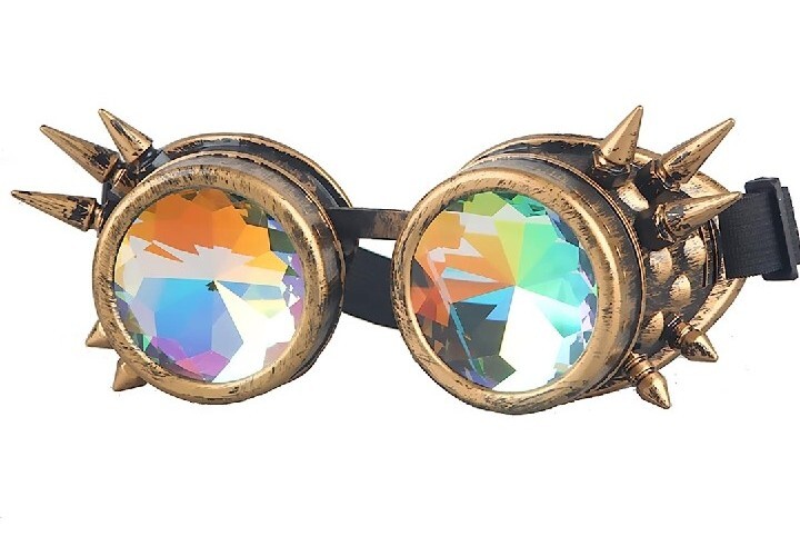 Kaleidoscope Steampunk Rave Glasses Goggles with Rainbow Crystal Glass Lens