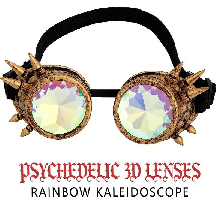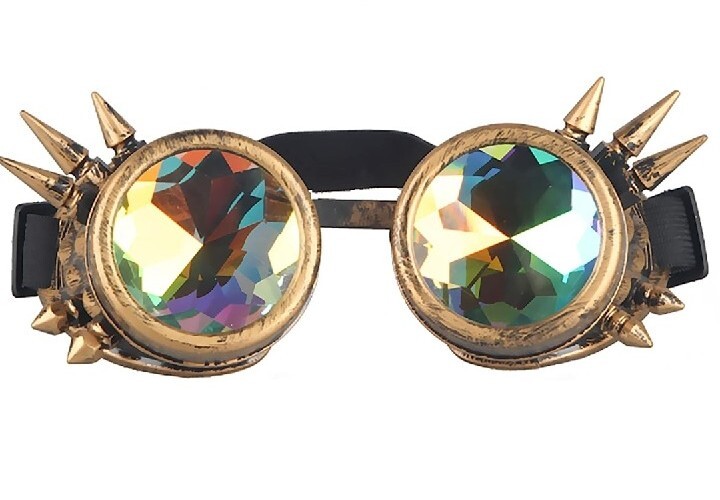 как выглядит Kaleidoscope Steampunk Rave Glasses Goggles with Rainbow Crystal Glass Lens фото