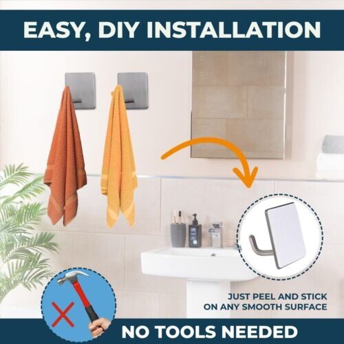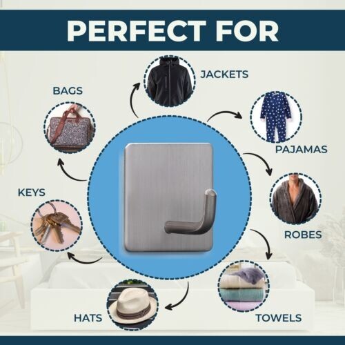 Heavy Duty Adhesive New Wall Hooks Stainless Steel Waterproof Silver 10 Pack