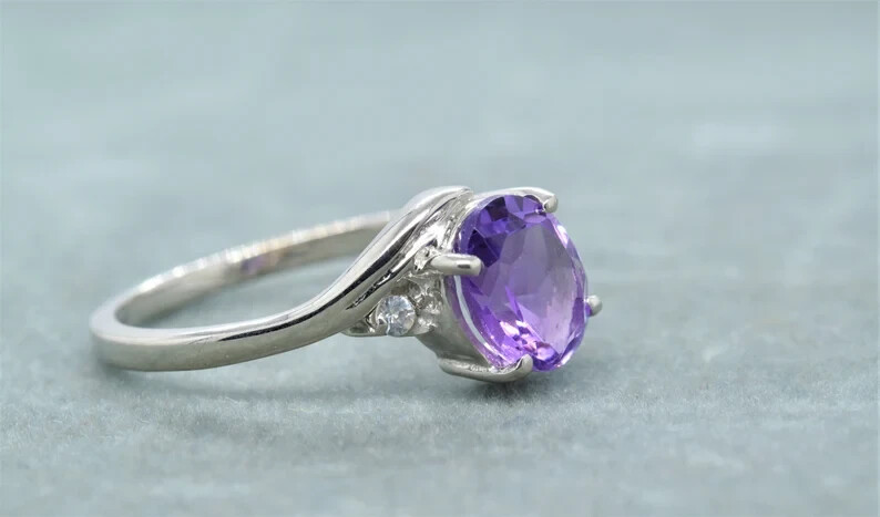 как выглядит Unique Amethyst Ring, Oval Cut, Adjustable Ring, Designer Ring,925 Sterling фото