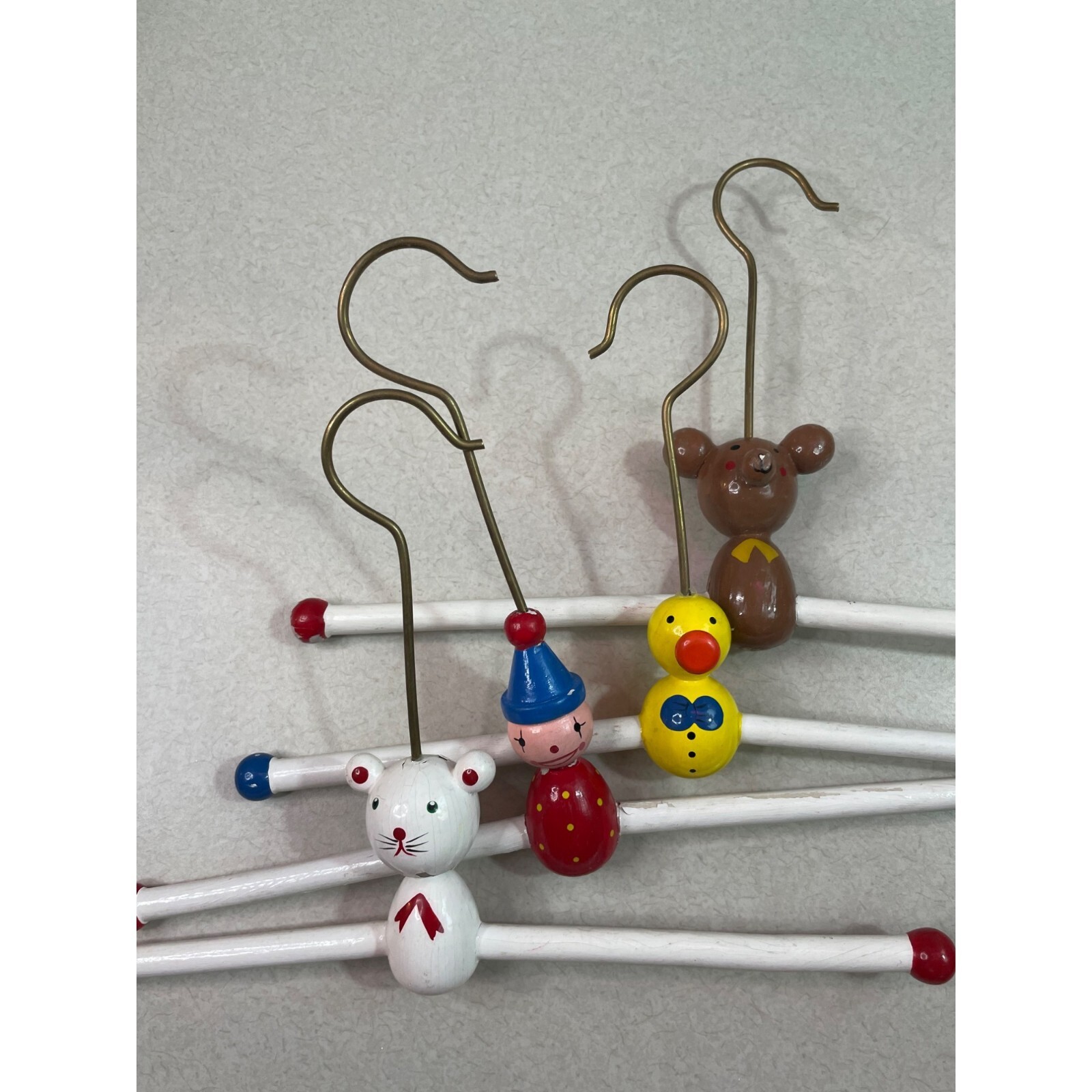 как выглядит Vintage Hand Painted Wood Metal Layette Hangers Circus Theme Set of Four фото