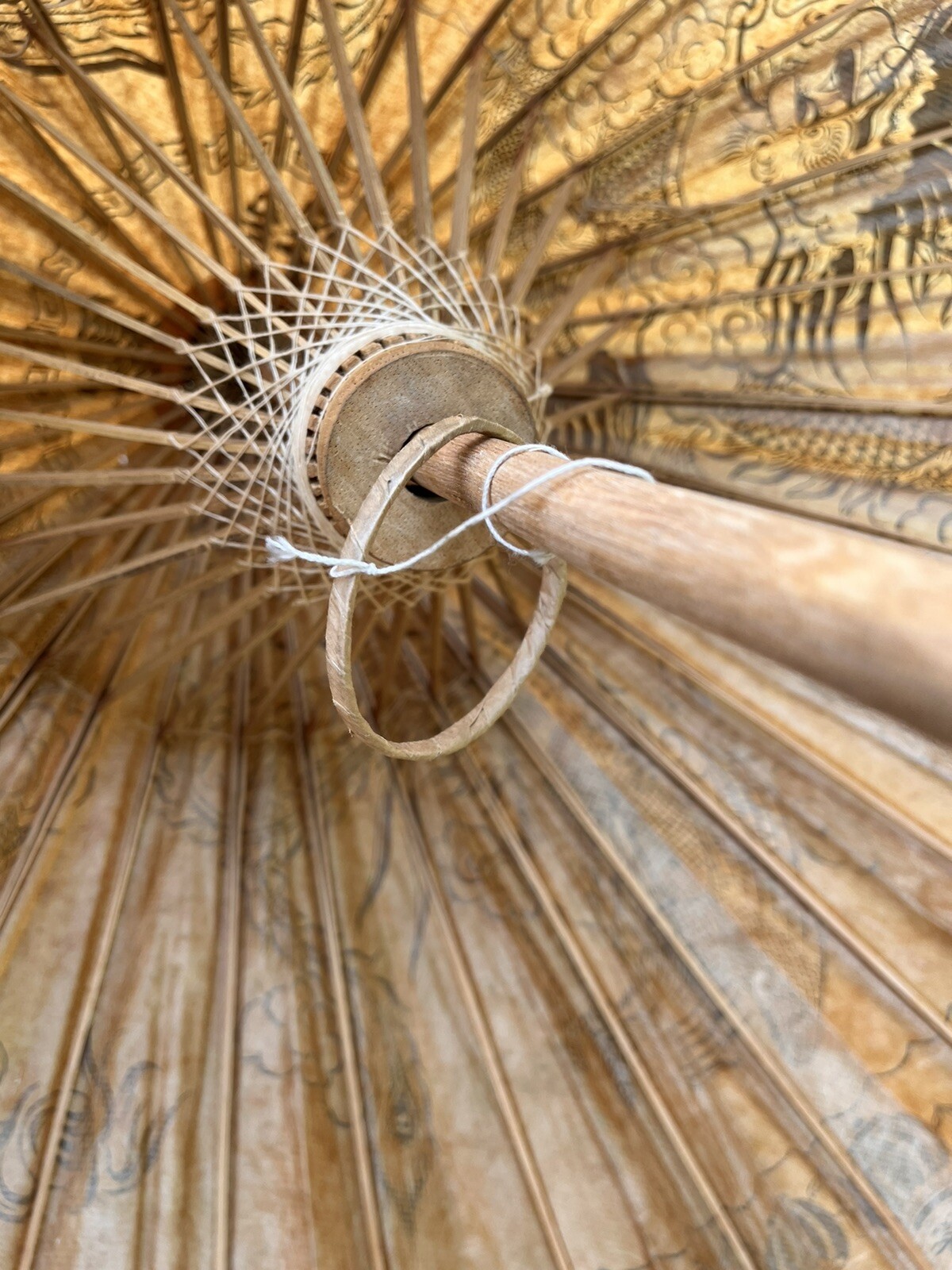 как выглядит Vintage 1940 s Bamboo Japanese Parasol - Paper Umbrella - RARE - MCM фото