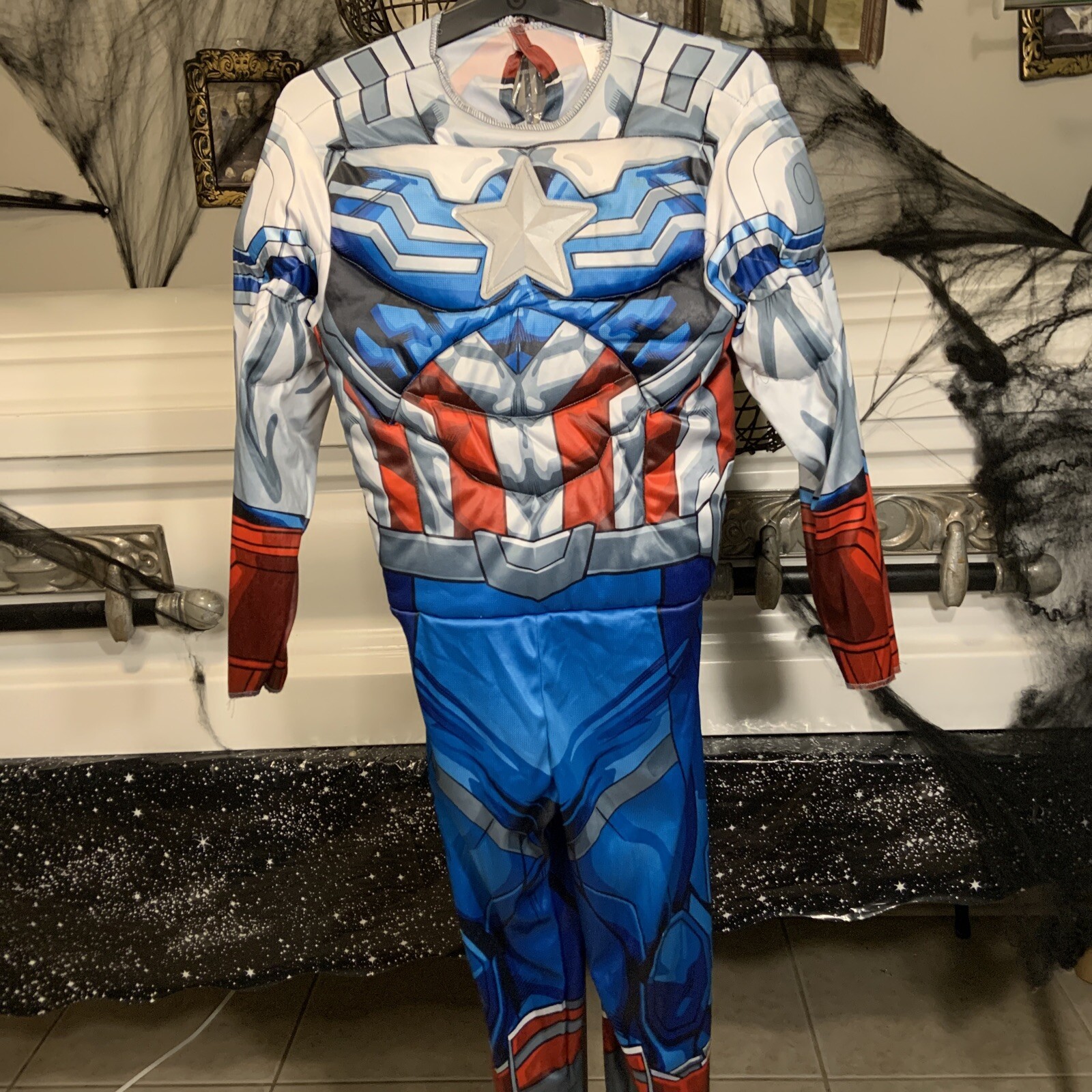 как выглядит Avengers Captain America Costume Boys Medium Marvel Jumpsuit Mask Halloween фото