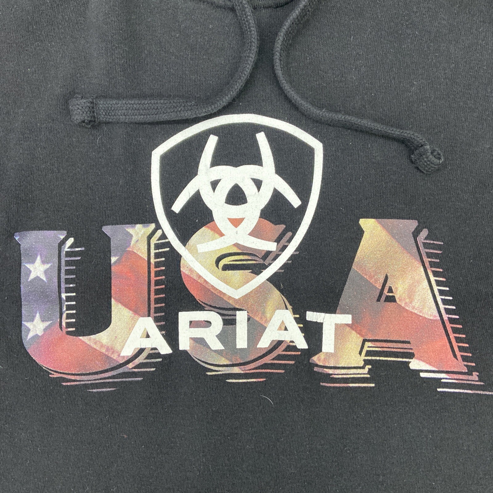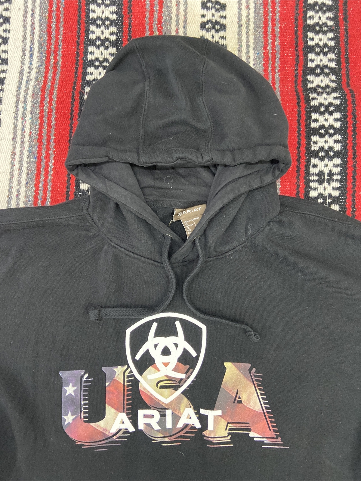 Ariat USA Adult Size L Hoodie Black Hooded Sweatshirt Front Pocket Pull Over