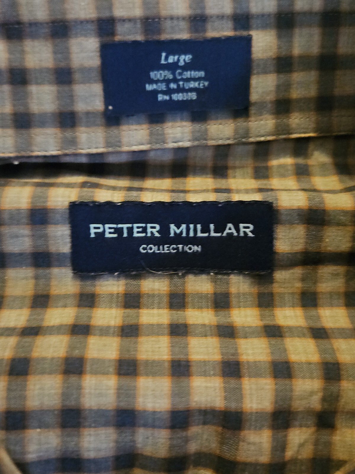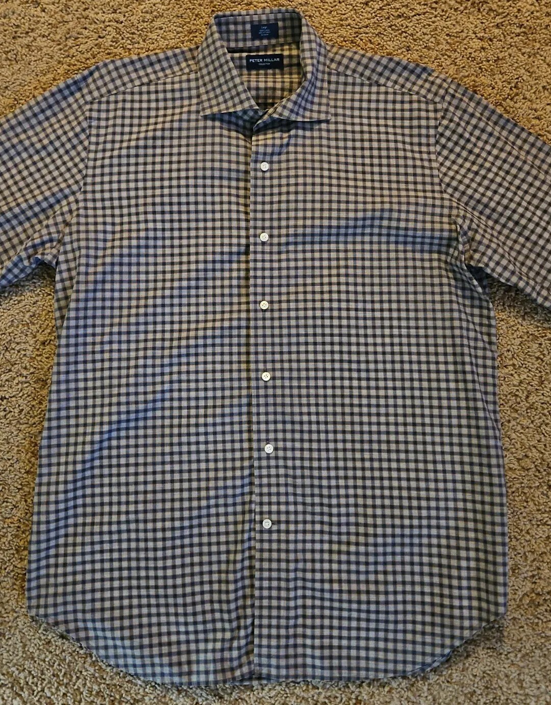 как выглядит Peter Millar Shirt Mens Large Dress Sport Lightweight Cotton Grey Checked фото