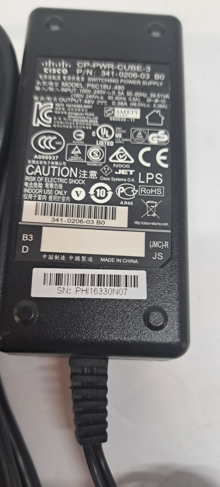 как выглядит Cisco CP-PWR-CUBE-3 VoIP Phone AC Power Supply PSC18U-480 341-0206-03 фото