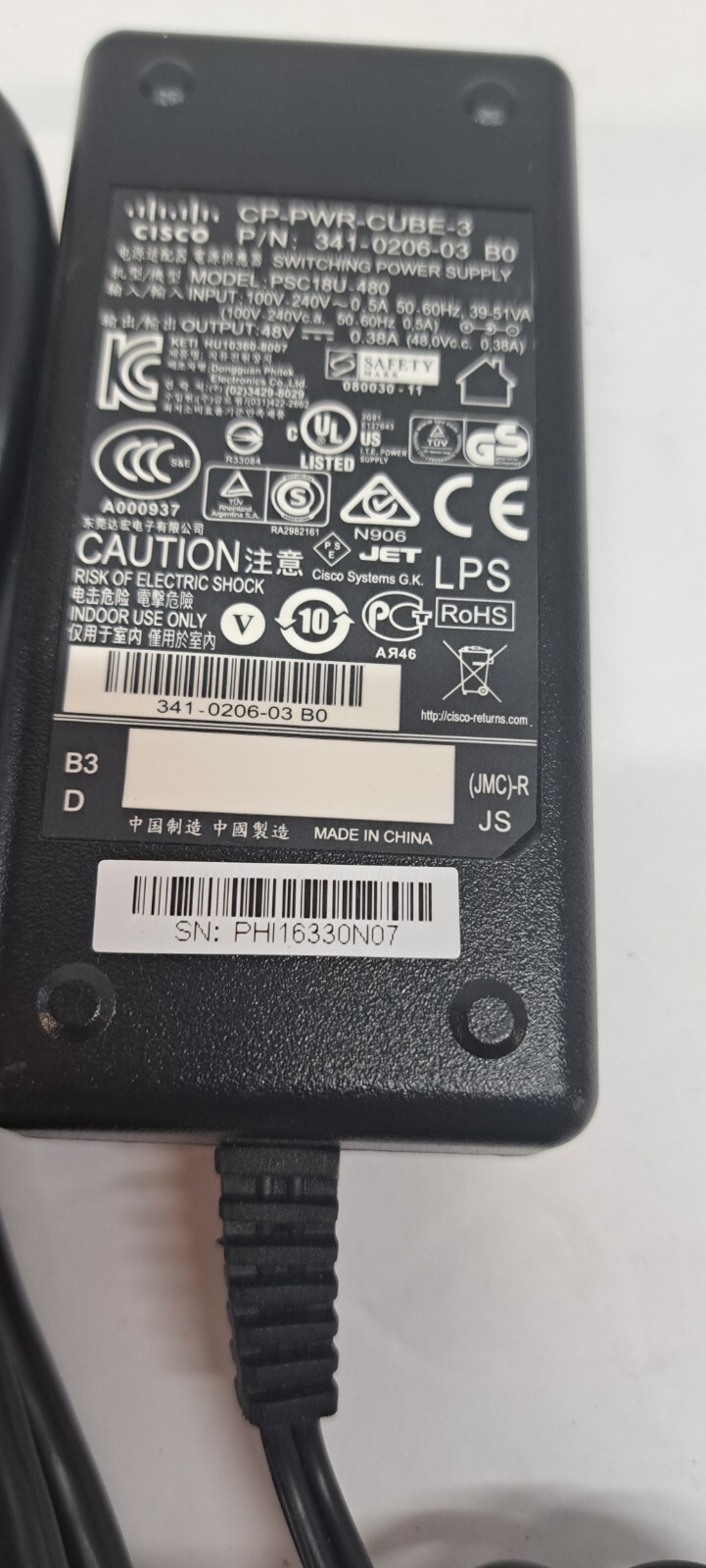 Cisco CP-PWR-CUBE-3 VoIP Phone AC Power Supply PSC18U-480 341-0206-03