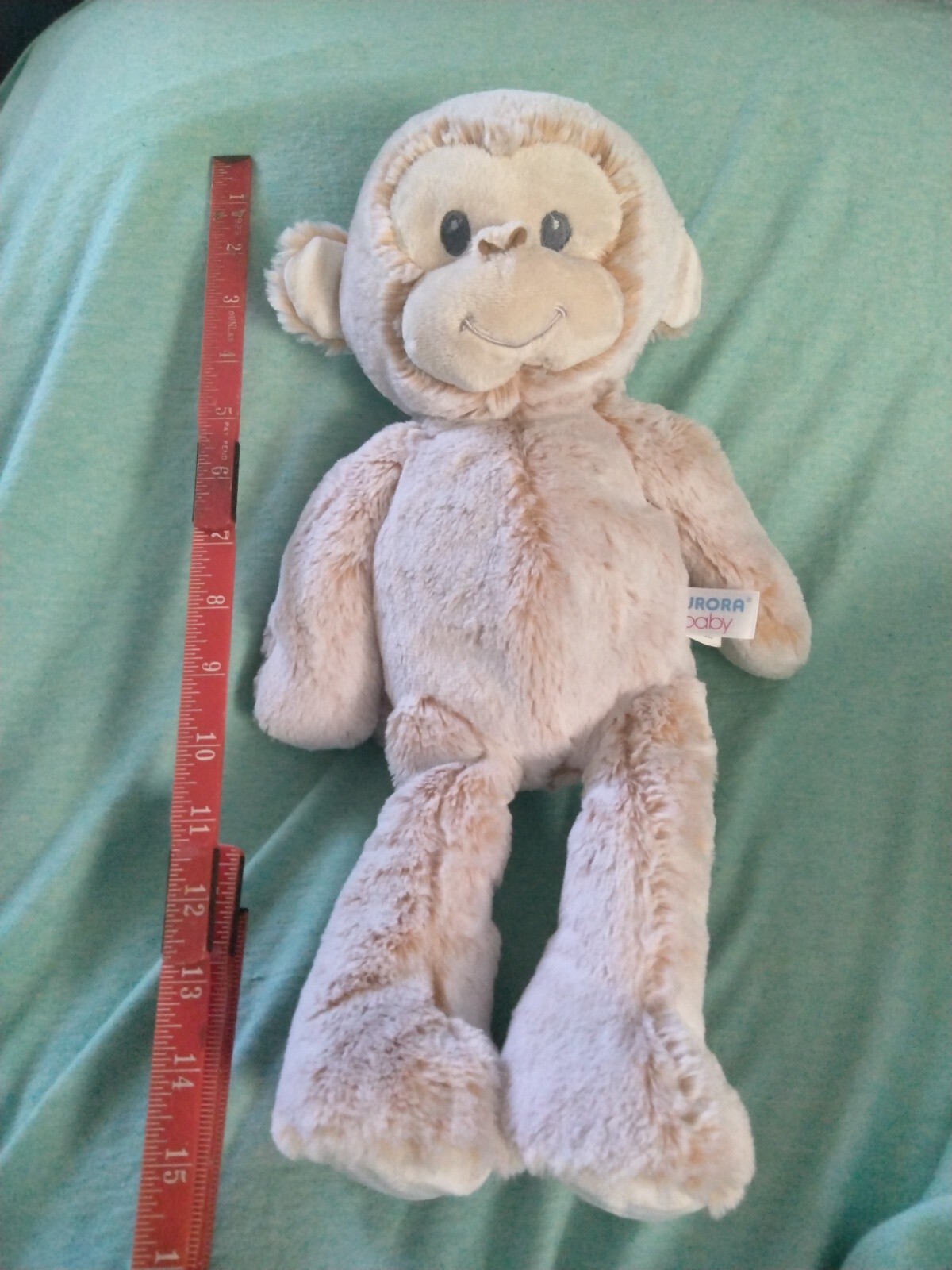 как выглядит Aurora Baby Monkey Stuffed Animal Ebba Marlow Tan Beige Plush 15 In Super Soft фото