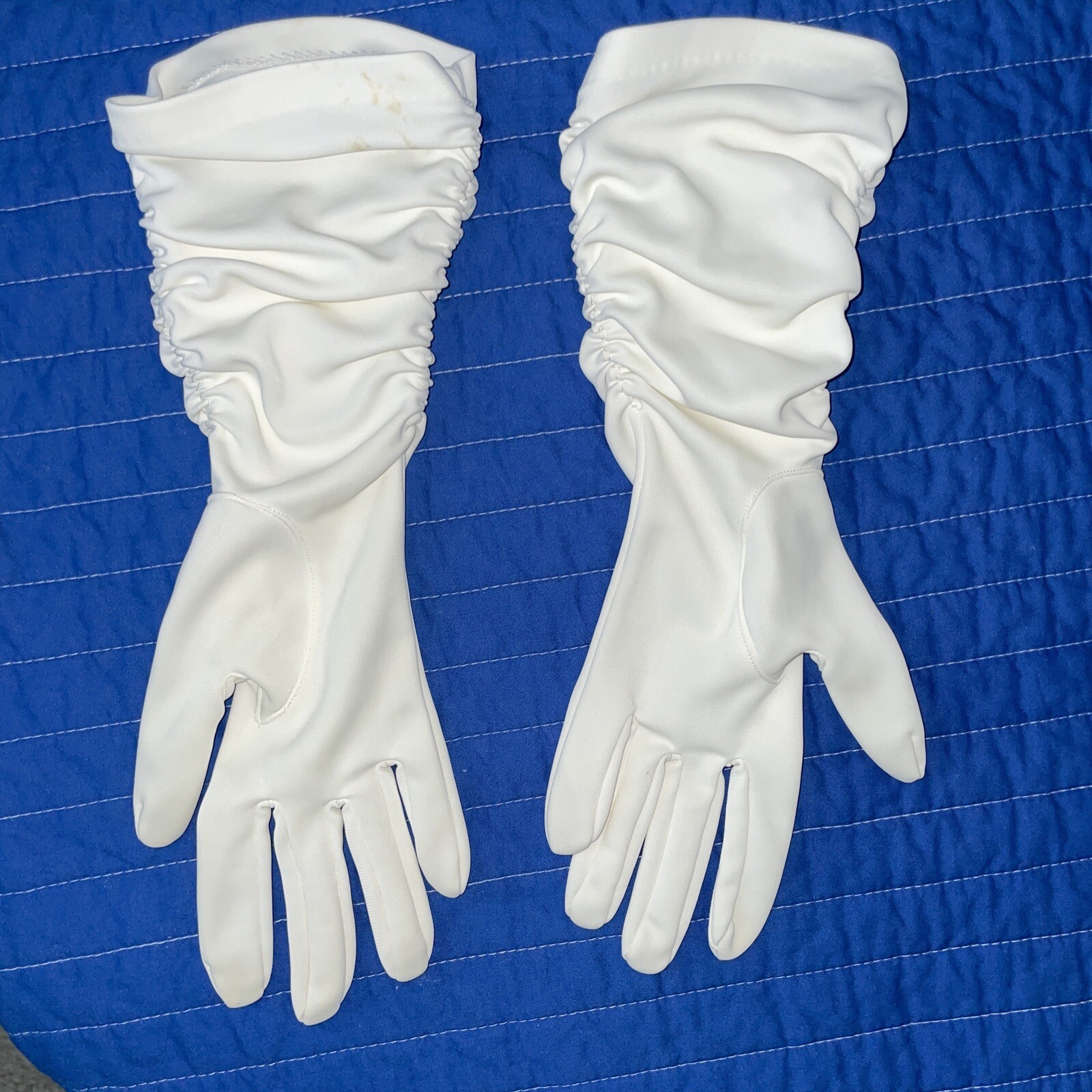 как выглядит Vintage white ruched gloves sides 13 stretches 15" size S-M фото